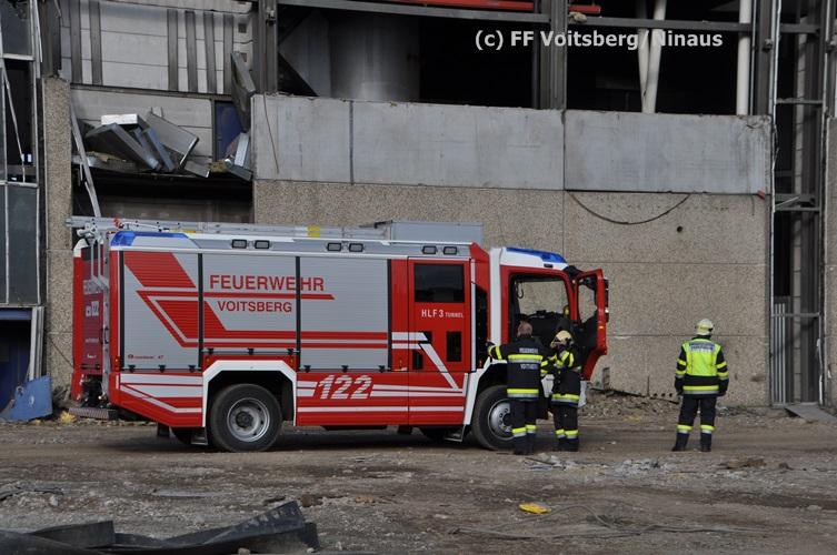 VOITSBERG, am 01.10.2015 Bei Abbrucharbeiten im stillgelegten Kraftwerk der ÖDK kam es in einem Liftschacht zu einem Kleinbrand, welcher von anwesenden Arbeitern mit einer vorhandenen Löschleitung selbst gelöscht werden konnte. Die alarmierte FF Voitsberg kontrollierte die Brandstelle mit einer Wärmebildkamera und führte kleinere Löscharbeiten durch. Es entstand kein Sachschaden. Eingesetzt waren HLF 3-Tunnel und TLFA/4000 mit 12 KameradInnen . Einsatzleiter HBI Ing. Klaus Gehr
