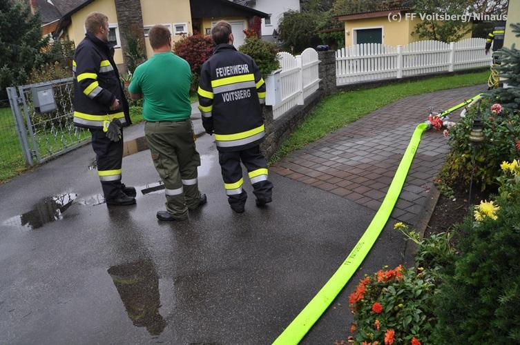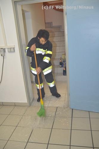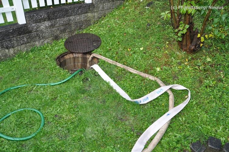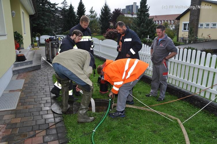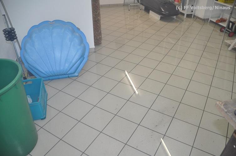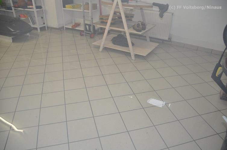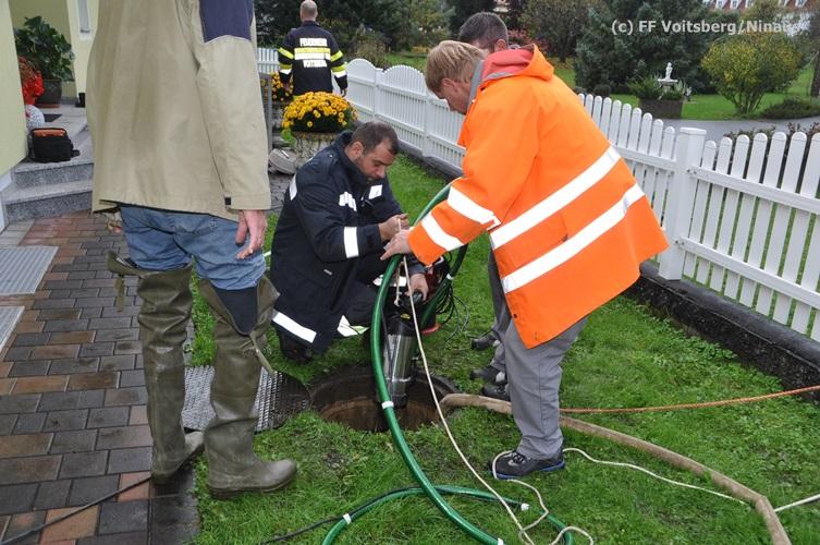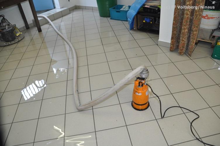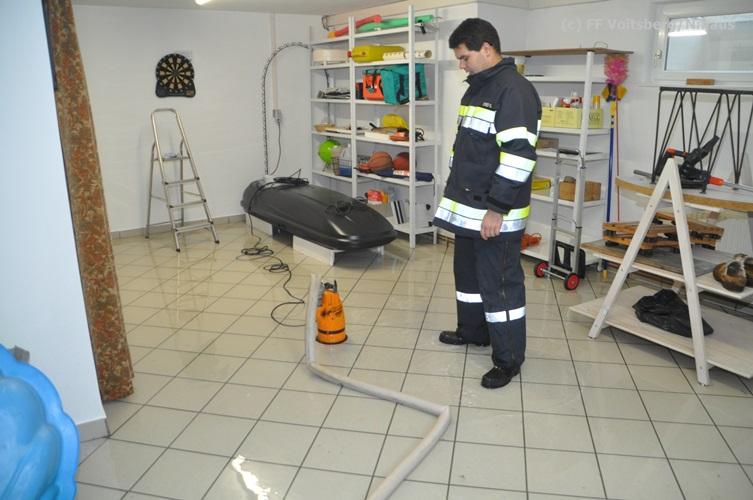 VOITSBERG, am 16.10.2015 Nach dem technischen Ausfall einer fest installierten Tauchpumpe drang Grundwasser in den Keller eines Wohnhauses ein und überschwemmte diesen mit ca. 15 cm. Abpumpen des Wassers mit Tauchpumpen und Trockenlegung mit Nasssauger.