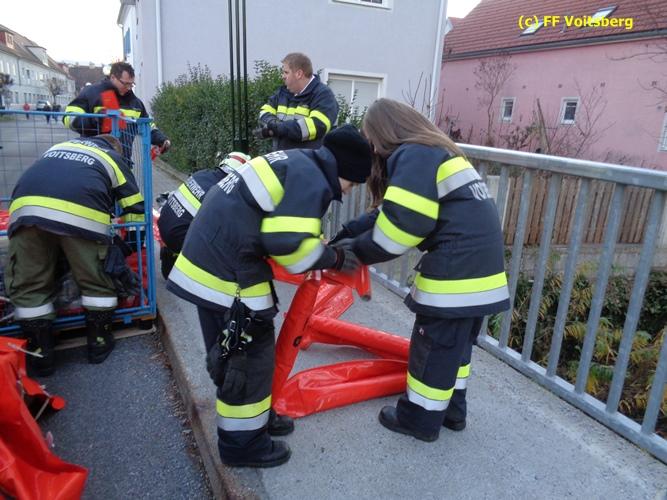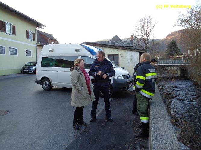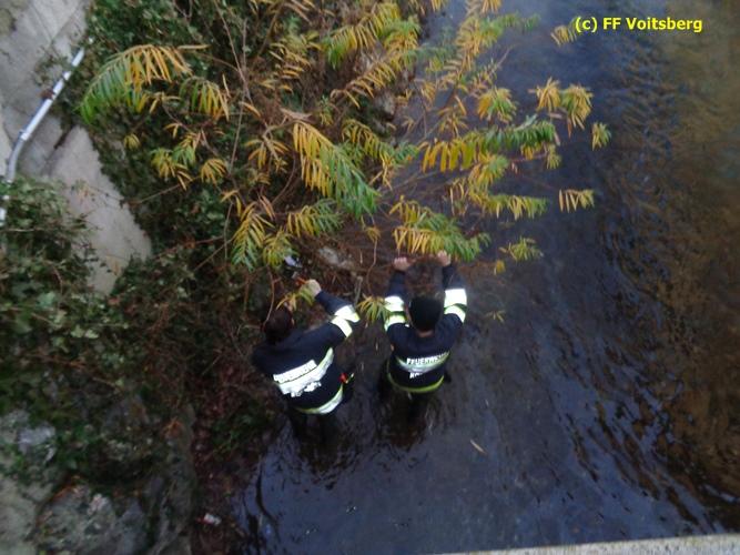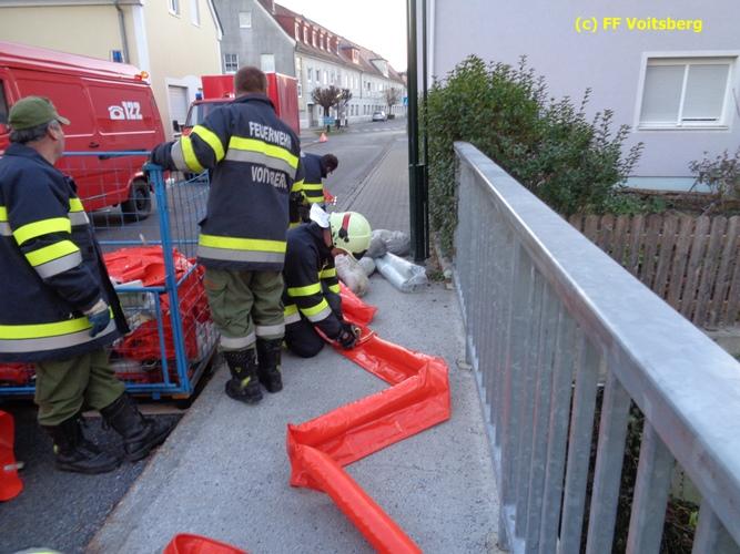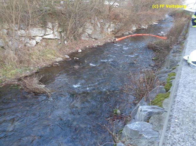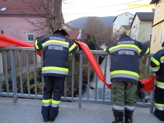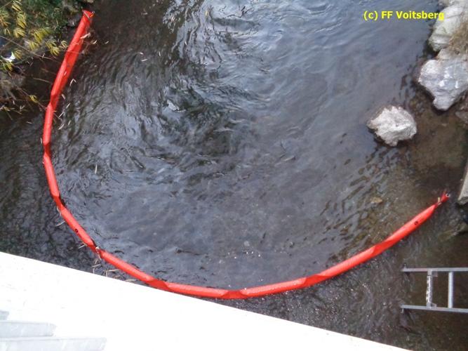 VOITSBERG, am 10.12.2015 Über Anforderung der einsatzleitenden FF Köflach wurde die FF Voitsberg als Ölstützpunktfeuerwehr angefordert, nachdem im Gemeindegebiet von Köflach im Gradnerbach ein Ölfilm sichtbar war. Nach einer Einsatzbesprechung wurden seitens der Feuerwehren Köflach und Voitsberg im Stadtgebiet Ölsperren errichtet. Die Einsatzleitung oblag ABI Markus Murgg. Ebenfalls am Einsatzort war ein Sachverständiger des Landes Steiermark.