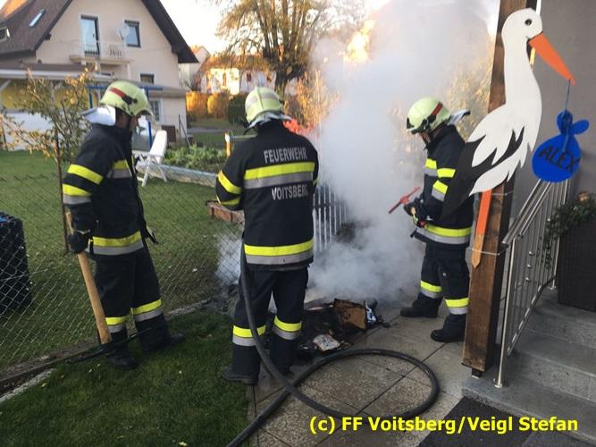 Brand eines Müllcontainers - mittels HD-Rohr gelöscht