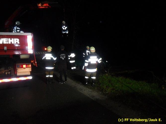 VOITSBERG, am 23.11.2016 Ein PKW kam aus ungeklärter Ursache von der Gemeindestrasse ab und landete quer auf einer Holzbrücke und drohte abzustürzen. Aufgabe der Feuerwehren Rosental und Voitsberg war es, den PKW, der mit einer Achse in der Luft hing, von der Brücke zu bergen, was mit dem WLF-K Voitsberg durchgeführt wurde. Der Lenker konnte mit seinem PKW anschließend die Fahrt wieder fortsetzen.