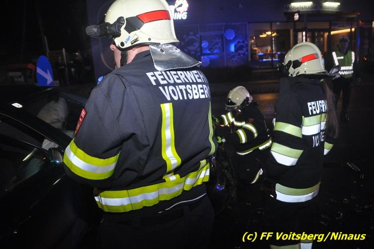 VOITSBERG, am 10.02.2017 Kurz vor dem Kreisverkehr "Blue Sky" in Fahrtrichtung Graz ereignete sich ein Auffahrunfall, wobei der hintere PKW schwer beschädigt wurde und von der Unfallstelle gebracht werden musste, ehe er von einem Autofahrerclub abgeschleppt wurde. Ausgeflossene Betriebsmittel wurden gebunden und entsorgt, sowie herumliegende Wrackteile von der Straße entfernt.