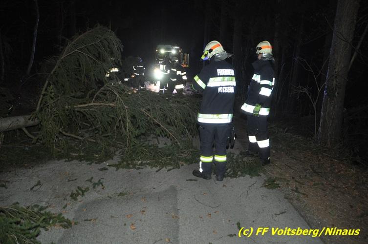 Die Gemeindestrasse war wegen eines umgestürzten Baumes unpassierbar. Entfernen des Baumes unter Einsatz einer Motorsäge.
