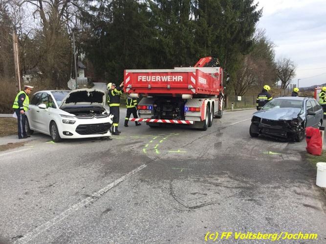 VOITSBERG, am 18.03.2017 Bei einem Zusammenstoß zweier Pkw auf der L315 im Bereich Hausdorf (Gemeinde Stallhofen, Bez. Voitsberg) am Samstag Nachmittag wurden zwei Personen verletzt.