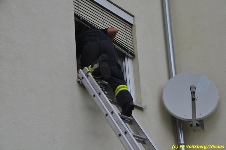 VOITSBERG, am 01.07.2017 Nachdem eine Frau auf Klopf- und Rufzeichen die Wohnungstüre nicht öffnete, wurde zwecks Öffnung ein Schlüsseldienst verständigt. Dieser verständigte, um die Besitzerin vor größeren Schaden zu bewahren, die FF Voitsberg um Einstieg über ein geöffnetes Fenster an. Die ausgerückte Mannschaft brachte eine Schiebeleiter an und ein Kamerad stieg über diese in die Wohnung ein und sperrte die Wohnungstüre auf. Die Wohnungsinhaberin konnte von den anwesenden Verwandten unverletzt in Empfang genommen werden.