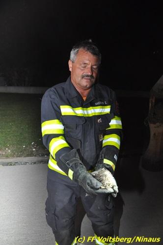 VOITSBERG, am 15.08.2017 Ein junger Igel stürzte, nachdem er vermutlich von Katzen in die Enge getrieben wurde, in einen Regenschacht und konnte sich nicht mehr befreien. Der Hausbesitzer verständigte zwecks Hilfeleistung über die LLZ die FF Voitsberg. Die Kameraden bauten das Rohr, welches in den Schacht führt ab und konnten den unverletzten Igel retten und in der Natur wieder aussetzen.