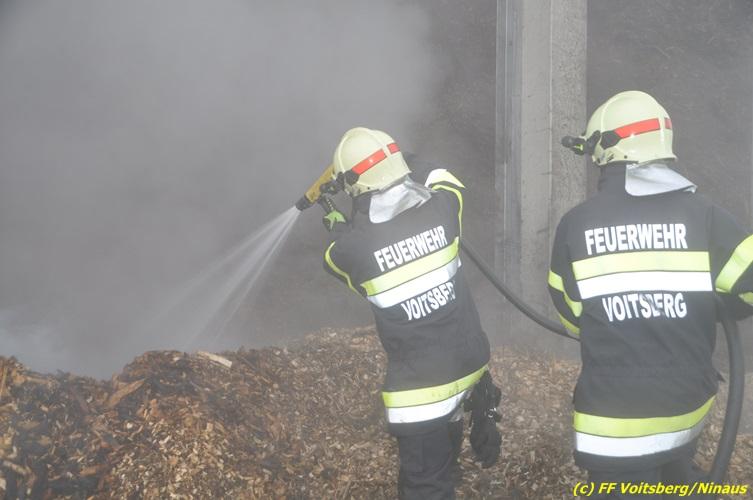 Brand von Hackschnitzeln in Lagerhalle