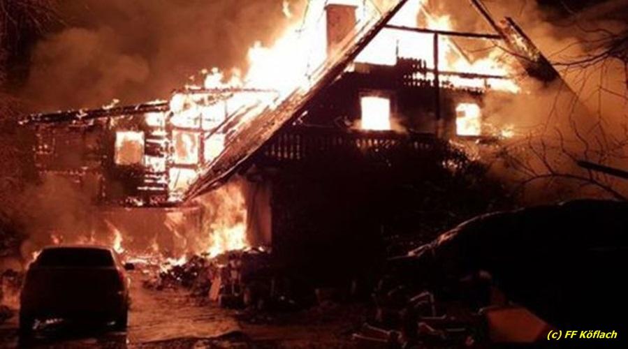 VOITSBERG, am 26.12.2017 Vollbrand eines Wohnhauses - FF Voitsberg im Einsatz mit HLF 4 und LKWA mit TSA.