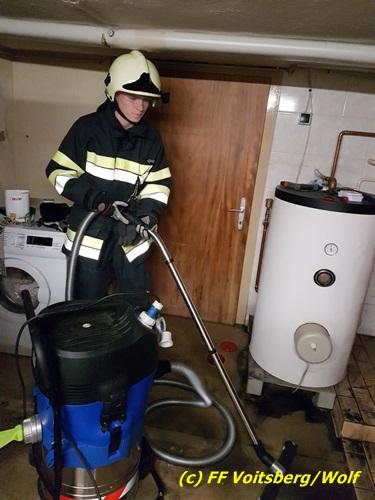 VOITSBERG, am 07.02.2018 Aufgrund der Überhitzung eines Heizkessels platzte am Mittwoch, dem 7. Februar 2018 in den frühen Abendstunden ein Heizungsrohr am Buchenweg in Voitsberg und setzte den Heizraum unter Wasser. Die FF Voitsberg führte Sicherungsarbeiten durch und pumpte das ausgelaufene Wasser mittels Nasssauger ab. Eingesetzt waren 14 Einsatzkräfte unter der Einsatzleitung von BI Karlheinz Buchegger. Text: Walter Ninaus, FF Voitsberg Foto: Hendrik Wolf, FF Voitsberg
