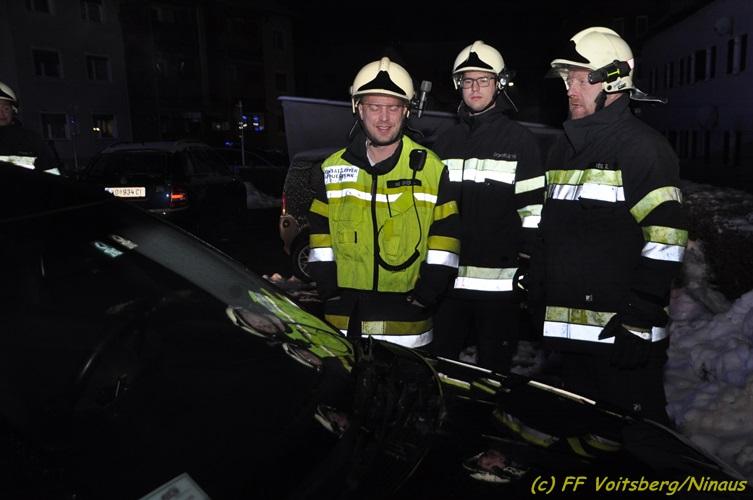 VOITSBERG, am 08.02.2018 Vermutlich nach einem Maderbiss entstand im Motorraum eines PKW am Donnerstag, dem 8. Februar kurz vor 6 Uhr ein Kurzschluss. Die Fahrzeugbesitzerin bemerkte dies während der Fahrt und parkte das Fahrzeug in der Arnsteinstrasse in Voitsberg. Eine vorbeikommende Passantin bemerkte austretenden Rauch und verständigte die Feuerwehr Voitsberg über Notruf. Es wurde ein Brandschutz aufgebaut, die Motorhaube geöffnet und die Batterie abgeklemmt. Die ebenfalls mit alarmierte Feuerwehr Krems war am Einsatzort als Reserve anwesend. Verletzt wurde niemand. Eingesetzt waren insgesamt 17 Einsatzkräfte der Feuerwehren Voitsberg und Krems, sowie zwei Polizeibeamte. Einsatzleiter: OBI Ing. Bernd Unger Text und Fotos: Walter Ninaus, FF Voitsberg