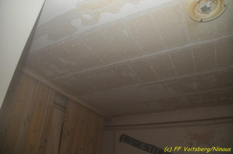 VOITSBERG, am 23.02.2018 Ein Mieter eines Mehrfamilienwohnhauses wurde kurz vor Mitternacht des 22. Februar 2018 in seiner Wohnung am Hauptplatz in Voitsberg aus dem Schlaf gerissen als er von der Decke seines Wohnzimmers tropfendes Wasser bemerkte. Er verständigte die FF Voitsberg, welche bei der Erkundung feststellte, dass in der darüber liegenden Wohnung nach dessen Öffnung durch einen Angehörigen der Hausbesitzer vermutlich ein technisches Gebrechen diesen Wasseraustritt verursachte. Es wurde unverzüglich der Hauptwasserhahn abgedreht. Für die Feuerwehr war nach der abschließenden Kontrolle kein weiterer Einsatz mehr erforderlich.