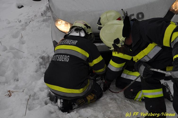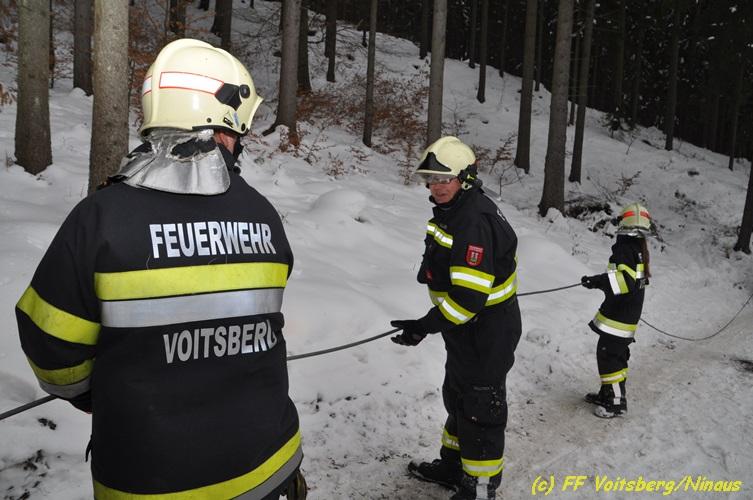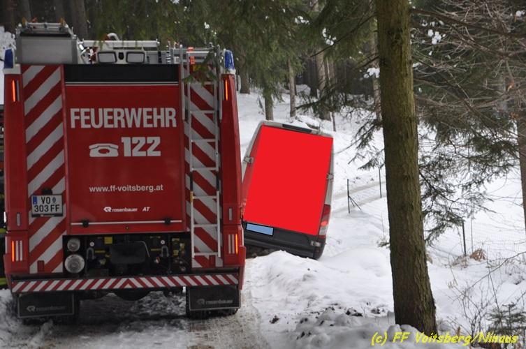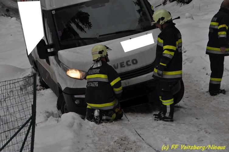 VOITSBERG, am 05.03.2018 Ein Lenker kam mit seinem Kleintransporter beim Rückwärtsfahren auf einem Privatweg in Voitsberg von der Fahrbahn seitlich ab und drohte auf einer Wiese weiter abzurutschten. Die von der LLZ Florian Steiermark verständigte FF Voitsberg sicherte das Fahrzeug und barg es mittels Seilwinde des HLF 3 unter Verwendung einer Umlenkrolle. Der Lenker konnte die Fahrt mit dem unbeschädigten Fahrzeug weiter fortsetzen.
