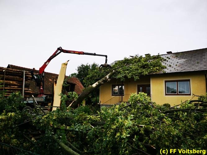 Diverse Unwettereinsätze im Gemeindegebiet Voitsberg (Kowaldstrasse, Gößnitzstrasse, Wolfshuberstrasse, Lobmingbergstrasse), Bärnbach (Ziegelwerkstrasse, Weingartsberg), Köflach (Gradenberg), Afling