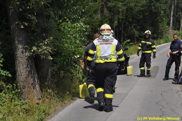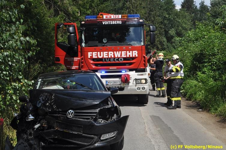 VOITSBERG, am 27.07.2018 Nachdem eine PKW-Lenkerin am Freitag, 27. Juli 2018 kurz vor 13 Uhr den Zusammenstoß mit zwei einspurigen Fahrzeugen verhindern wollte, verriss sie ihr Fahrzeug und stieß mit ihrem PKW auf der Kowaldstrasse in Voitsberg gegen ein Baum. Die FF Voitsberg wurde zwecks Beseitigung der Ölspur und Bergung des Fahrzeuges auf einen gesicherten Platz alarmiert. Herumliegende Wrackteile wurden von der Fahrbahn entfernt und entsorgt. Das Bindemittel wurde ebenfalls fachgerecht entsorgt. Die Lenkerin wurde mit Verletzungen unbestimmten Grades vom Roten Kreuz in das LKH Voitsberg eingeliefert. Eingesetzt waren seitens der FF Voitsberg unter dem Einsatzleiter BM Rene Sorger 7 Einsatzkräfte, 2 Beamte der Polizei Voitsberg und 2 Sanitäter des Roten Kreuzes Voitsberg. Text und Fotos: Walter Ninaus/FF Voitsberg