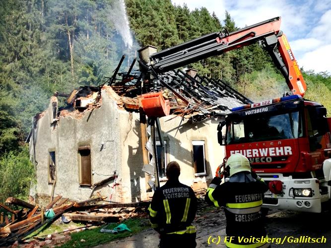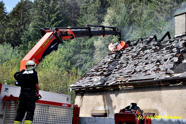 VOITSBERG, am 23.09.2018 Das WLF der FF Voitsberg wurde am Sonntag, 23. September 2018 um 12:50 Uhr nach einem Wohnhausbrand in Edelschrott (Nähe Lustiger Bauer) am Vormittag von der Einsatzleitung zwecks Abtragen des Dachstuhles aus Sicherheitsgründen mit dem Holzgreifer alarmiert.