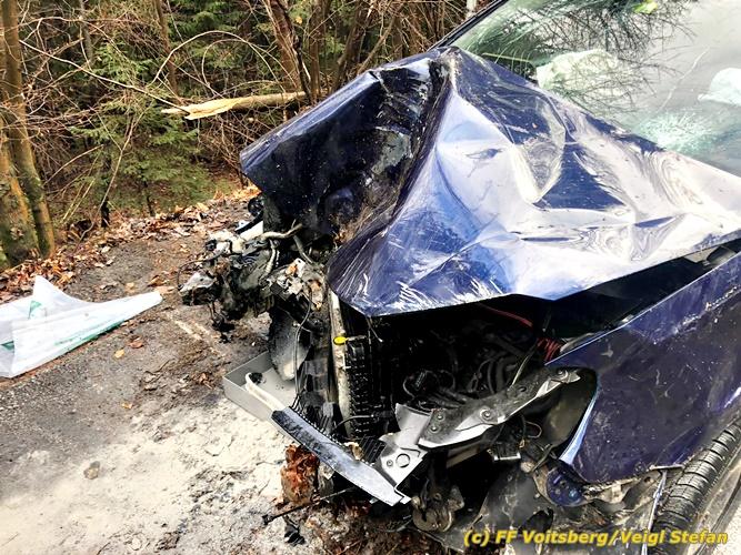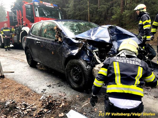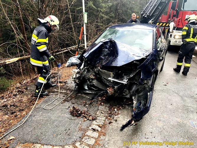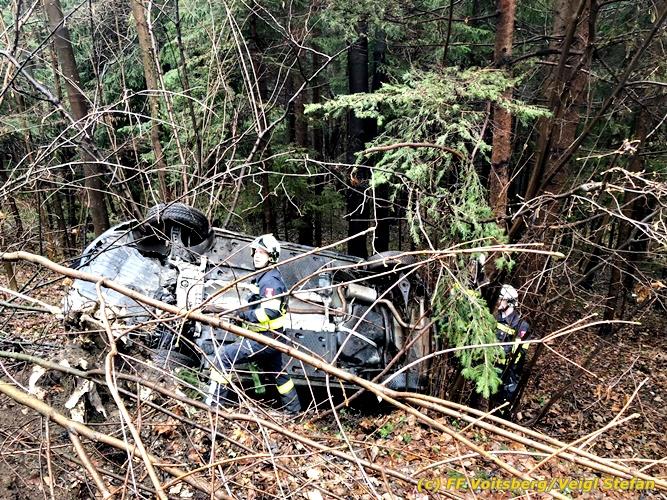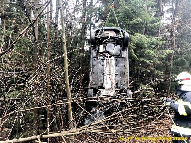 VOITSBERG, am 03.02.2019 Über Anforderung der einsatzleitenden Feuerwehr Edelschrott wurde das WLF-Kran der FF Voitsberg am Sonntag, 3. Feber 2019 um 09:27 Uhr zu einer Fahrzeugbergung alarmiert. Ein von der B 70 in einen Wald gestürzter PKW musste mit dem WLF-Kran der FF Voitsberg in Zusammenarbeit mit der FF Edelschrott geborgen werden. Text: Walter Ninaus, FF Voitsberg Fotos: Stefan Veigl, FF Voitsberg