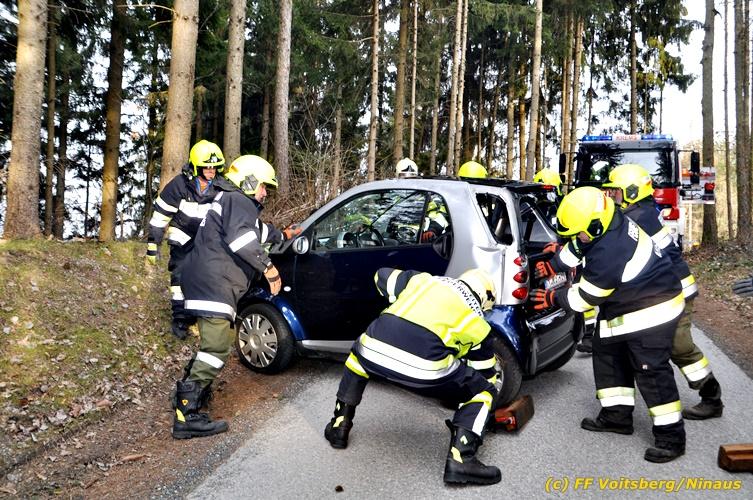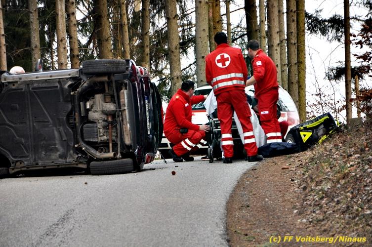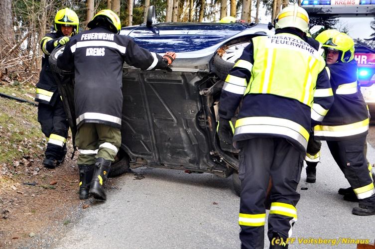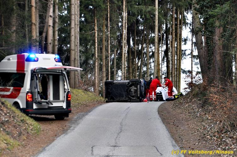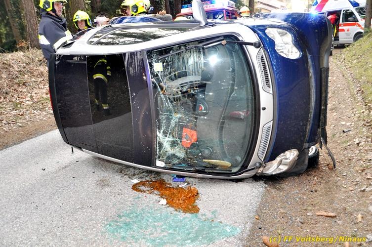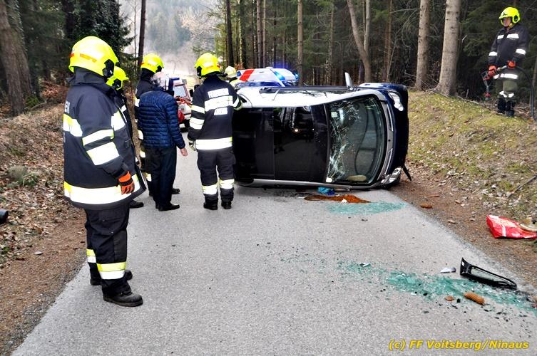 VOITSBERG, am 20.02.2019 Die Feuerwehren Krems und Voitsberg wurden am Mittwoch, 20. Feber 2019 um 15:58 Uhr zu einem Einsatz gerufen. Die Meldung lautete, „Person nach Verkehrsunfall im umgestürzten Fahrzeug eingeklemmt“. Zum Glück konnte die Lenkerin mit eigenen Kräften das Fahrzeug verlassen, sodass keine Menschenrettung erforderlich war. Die unbestimmten Grades verletzte Frau wurde vom Roten Kreuz erstversorgt und ins LKH Voitsberg eingeliefert. Die Feuerwehren Krems und Voitsberg bargen das leicht beschädigte Fahrzeug. Die Polizei führte die Erhebungen durch. Text und Fotos: Walter Ninaus, FF Voitsberg