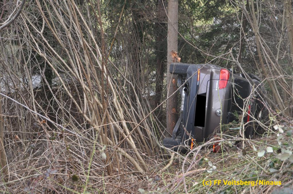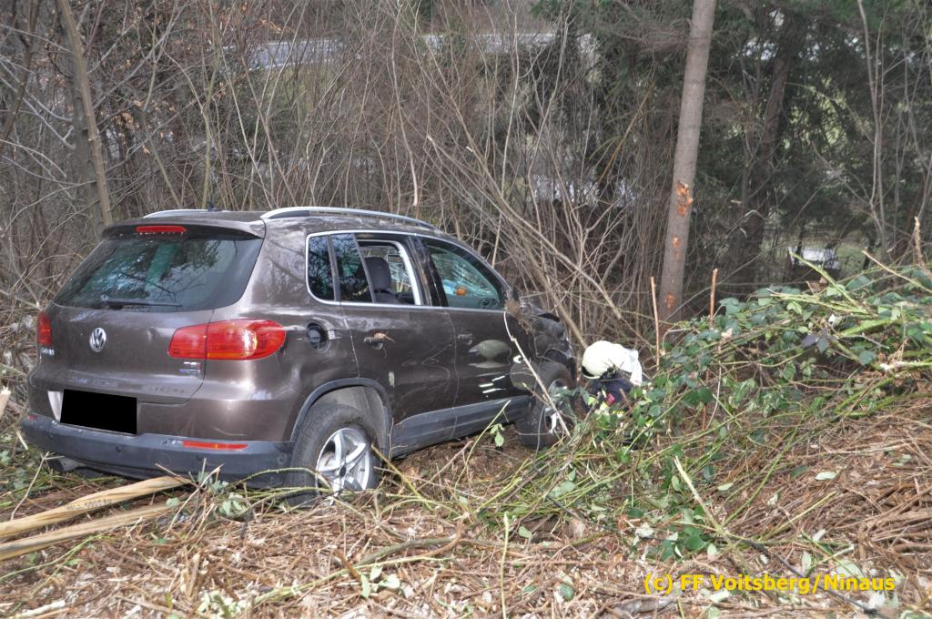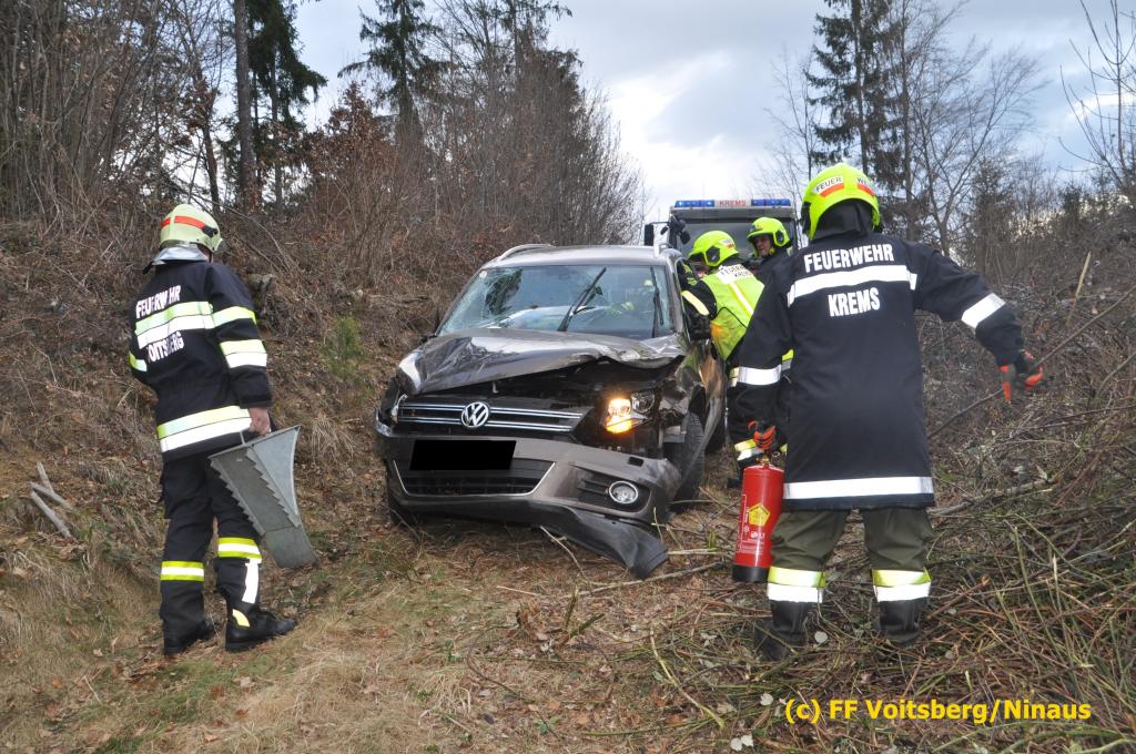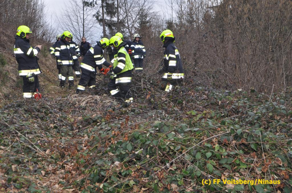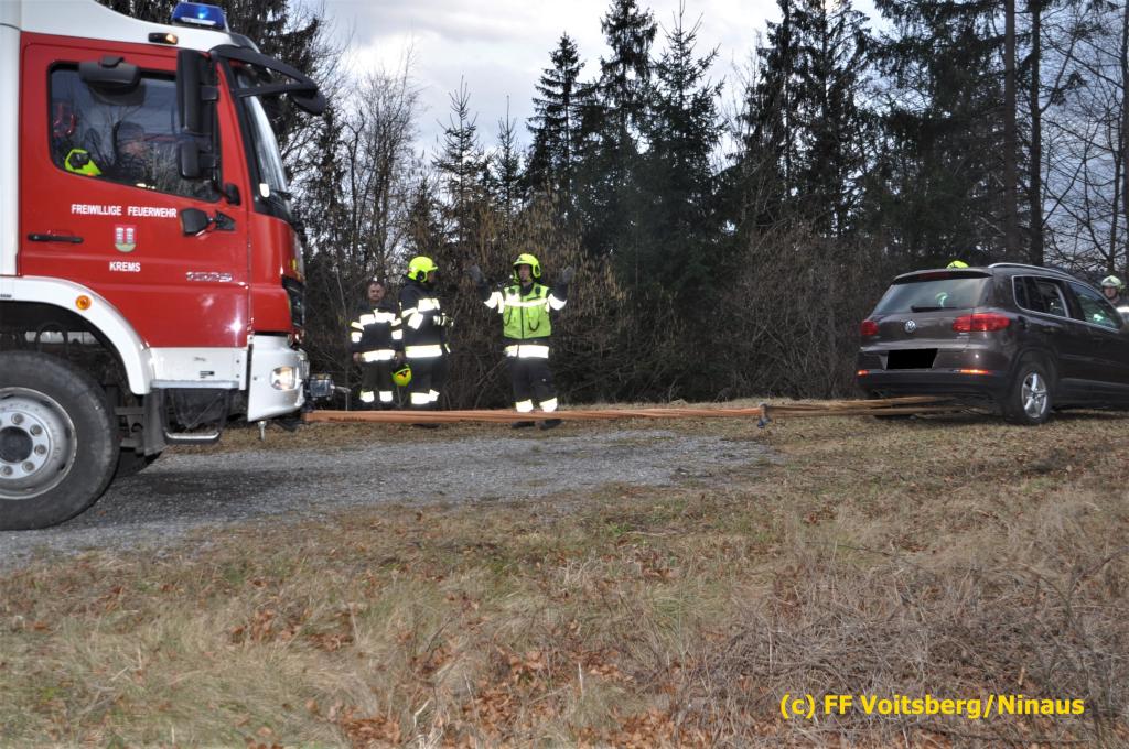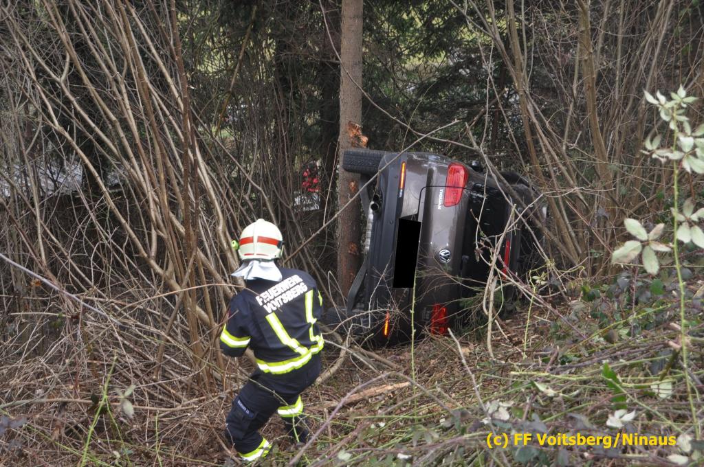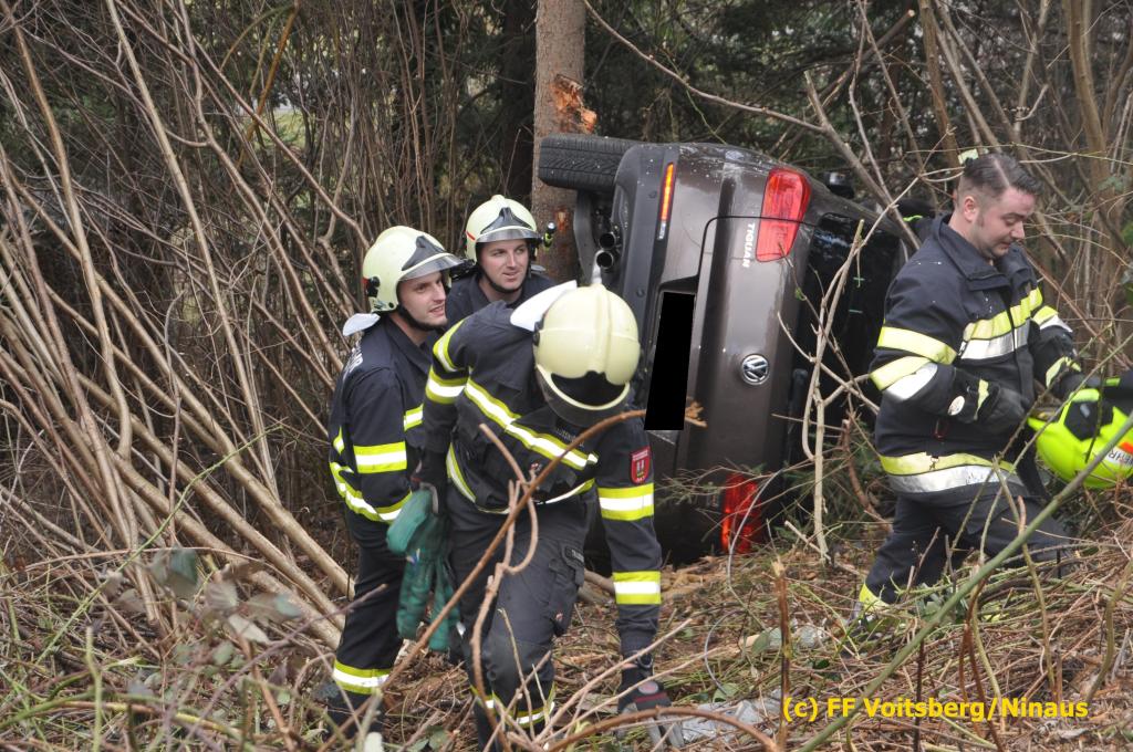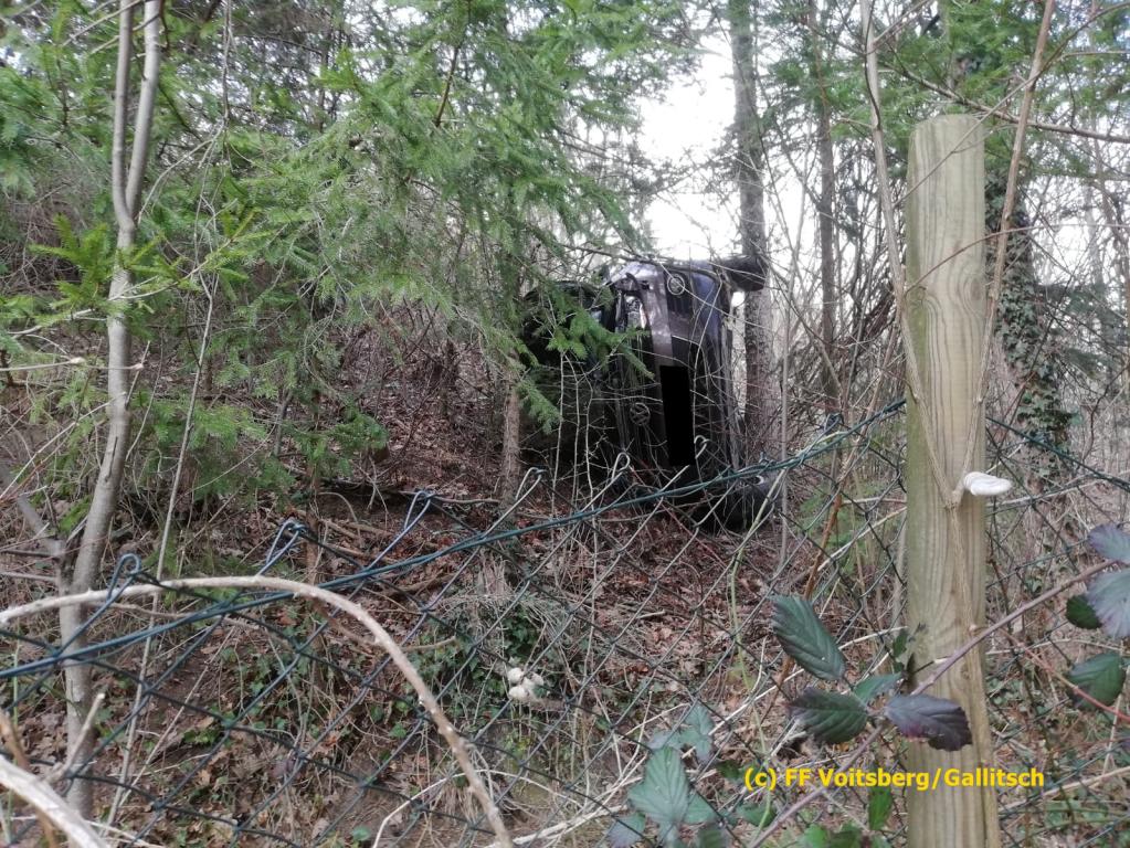 VOITSBERG, am 08.03.2019 Am Freitag, 8. März 2019 in den Nachmittagsstunden kam eine Lenkerin mit ihrem PKW auf der Lobminger Landesstrasse kurz nach der Ruppbauernhöhe in Richtung Voitsberg aus unbekannten Gründen links von der Fahrbahn ab, fuhr ca. 150 m einen Waldweg bergab und stürzte von diesem ca. 30 m nach links überschlagend gegen einen Baum und blieb dort hängen. Die Lenkerin konnte das Fahrzeug wie durch ein Wunder unverletzt verlassen. Der Einsatzleiter der zur Bergung alarmierten FF Krems entschied nach Feststellung der Lage als Unterstützung die FF Voitsberg anzufordern. Um zum bergenden Fahrzeug zu gelangen, musste mit Motorsägen eine Schneise geschnitten werden. Mit Seilwinden und Umlenkrollen wurde das schwer beschädigte Fahrzeug in Zusammenarbeit beider Wehren geborgen und von einem Autofahrerclub abgeschleppt. Text: Walter Ninaus, FF Voitsberg Fotos: Gallitsch und Ninaus, beide FF Voitsberg