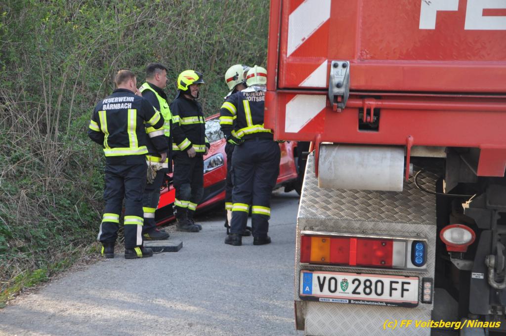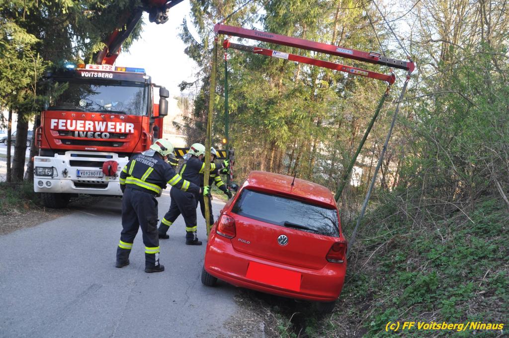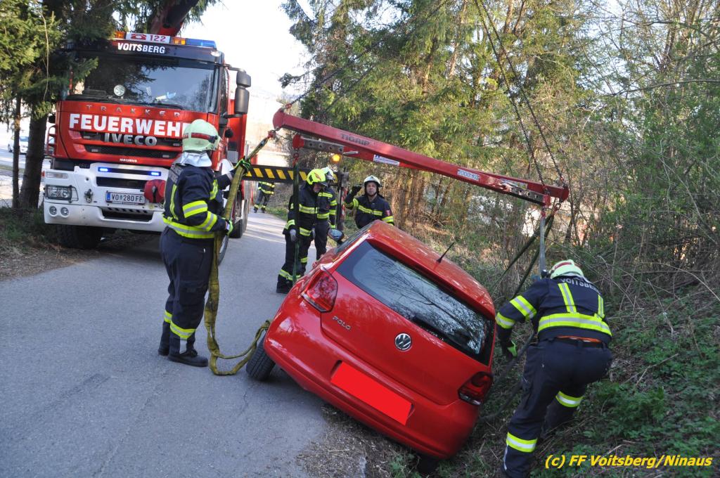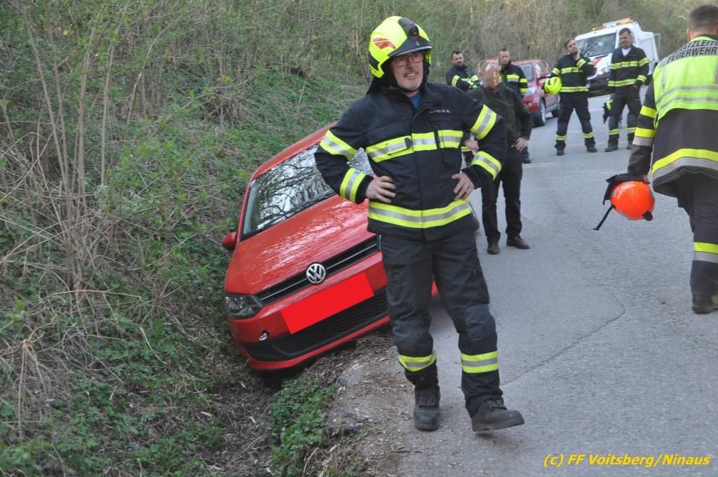 VOITSBERG, am 31.03.2019 Am Sonntag, 31. März 2019 geriet in den Nachmittagsstunden ein PKW auf einer Gemeindestrasse in Bärnbach von der Straße ab und kam in einer Regenrinne zu stehen, wobei das Fahrzeug mit der Bodenplatte aufsaß. Die alarmierte FF Bärnbach sicherte die Unfallstelle ab und forderte zur Bergung das WLF-Kran der FF Voitsberg an. Das Fahrzeug wurde unbeschädigt geborgen und konnte die Fahrt auf eigener Achse fortsetzen. Verletzt wurde niemand. Eingesetzte Kräfte unter Einsatzleiter OBI Michael Witreich FF Bärnbach mit 15 Kräften FF Voitsberg mit 8 Kräften Text und Fotos: Walter Ninaus, FF Voitsberg