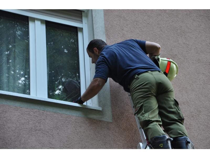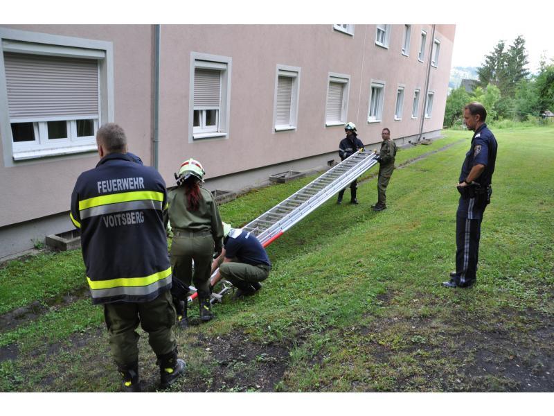VOITSBERG, am 14.06.2014 Nachdem ein Wohnungsinhaber seit einigen Tagen nicht mehr von einem Bekannten gesehen wurde, verständigte dieser die Polizei, die wiederum über die LLZ die FF Voitsberg zwecks Wohnungsöffnung alarmierte. Zuerst wurde über einer Schiebeleiter versucht, durch die geschlossenen Fenster in die Wohnung Einschau zu halten. Da niemand zu sehen war, entschloss man sich zur Türöffnung und fand schlussendlich den Abgängigen.
