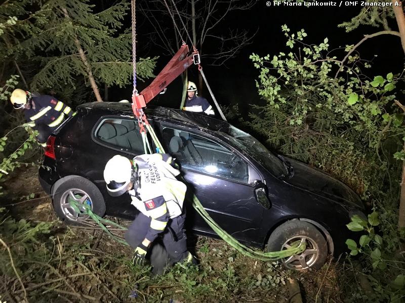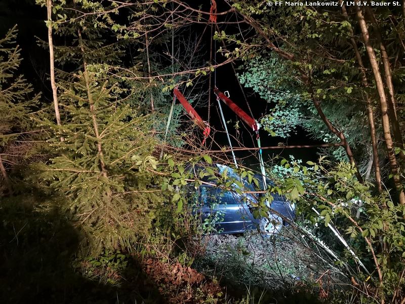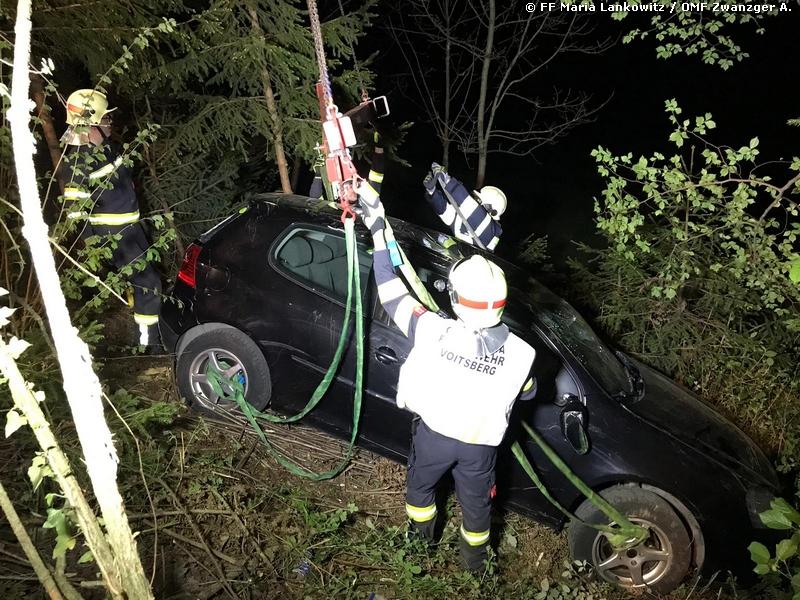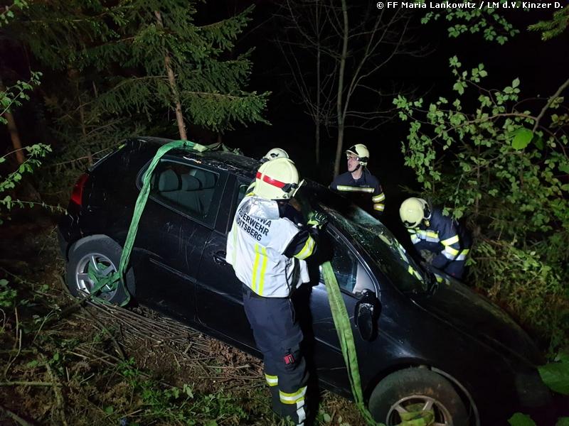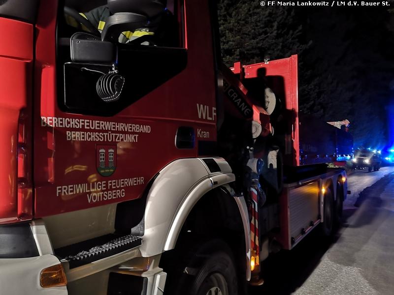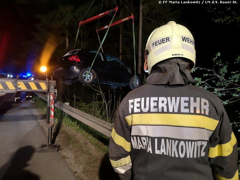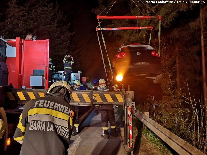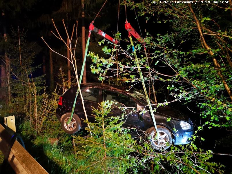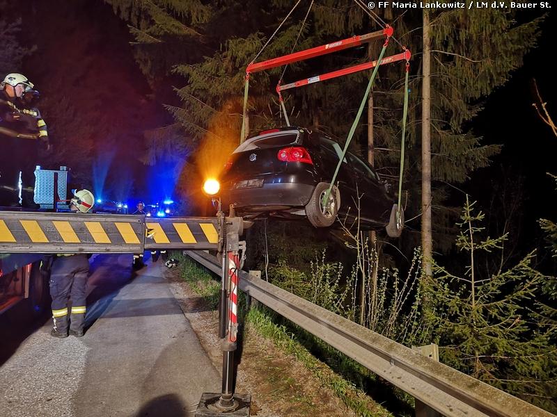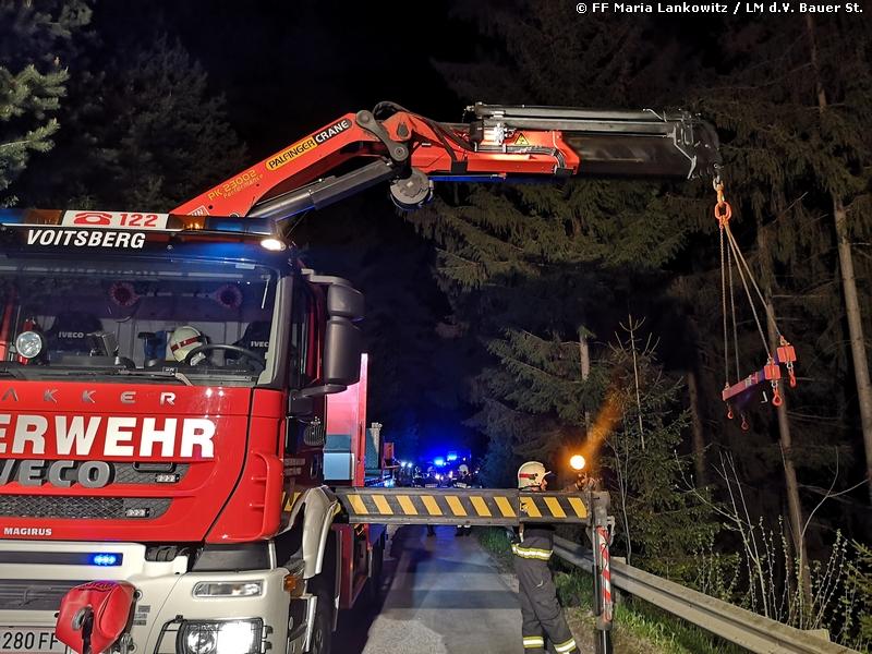 VOITSBERG, am 27.04.2019 Über Anforderung der einsatzleitenden Feuerwehr Maria Lankowitz wurde zwecks Bergung eines Pkw`s, nachdem dieser über eine Böschung geriet, das WLF-Kran der FF Voitsberg in den Abendstunden des Samstag, 27. April 2019 alarmiert. In Zusammenarbeit beider Feuerwehren konnte der Einsatz erfolgreich abgeschlossen werden.