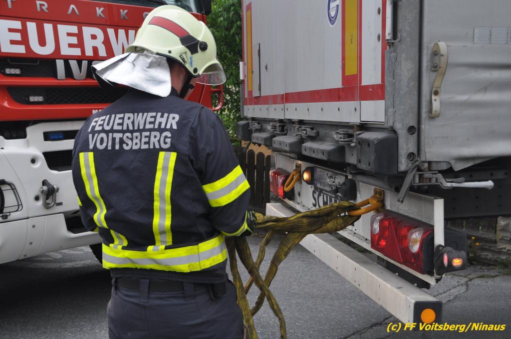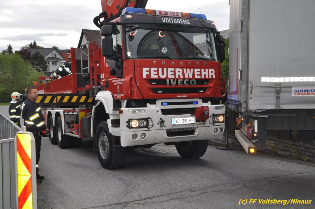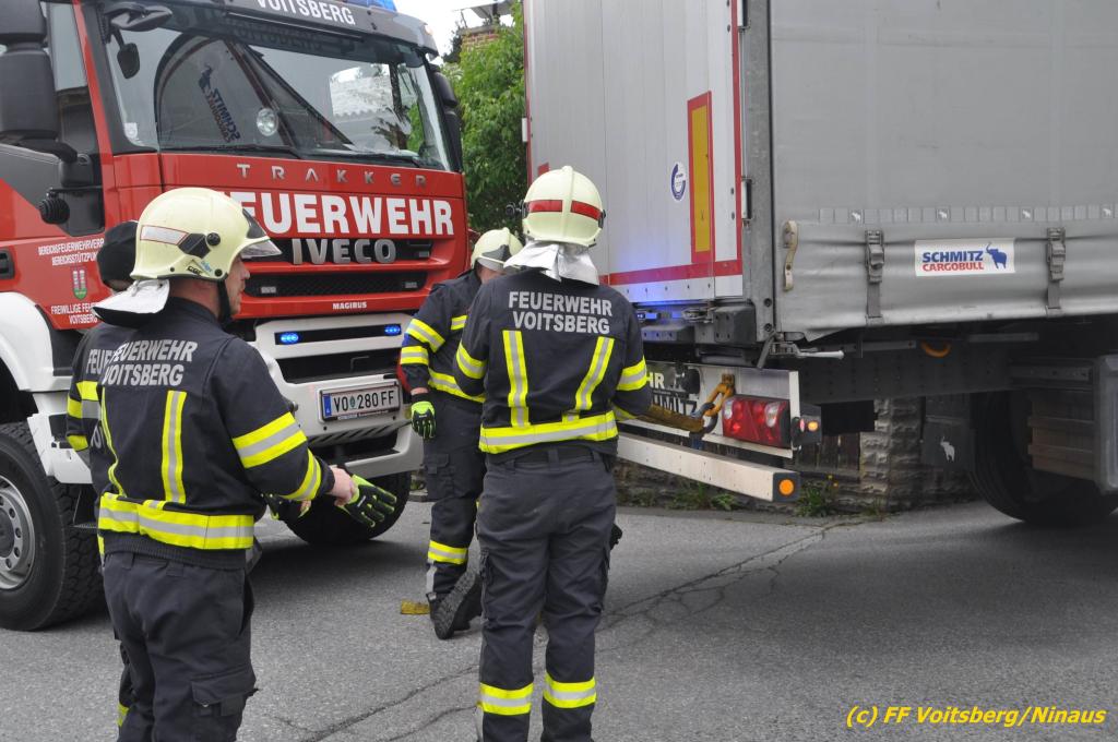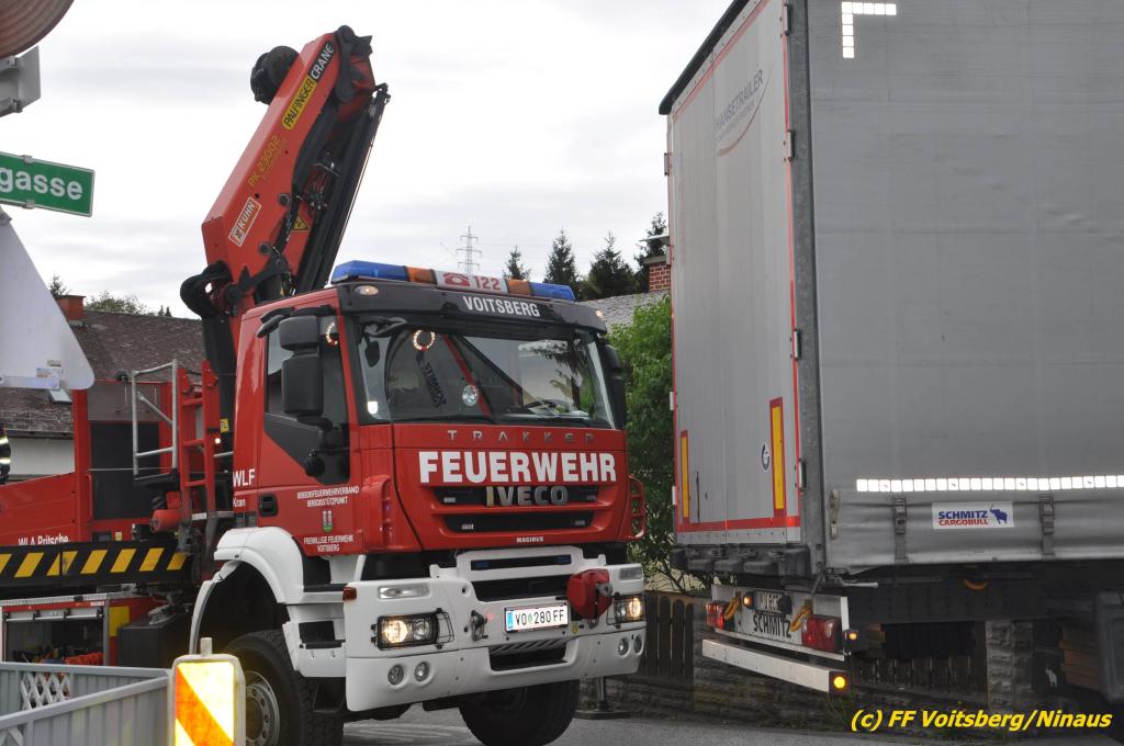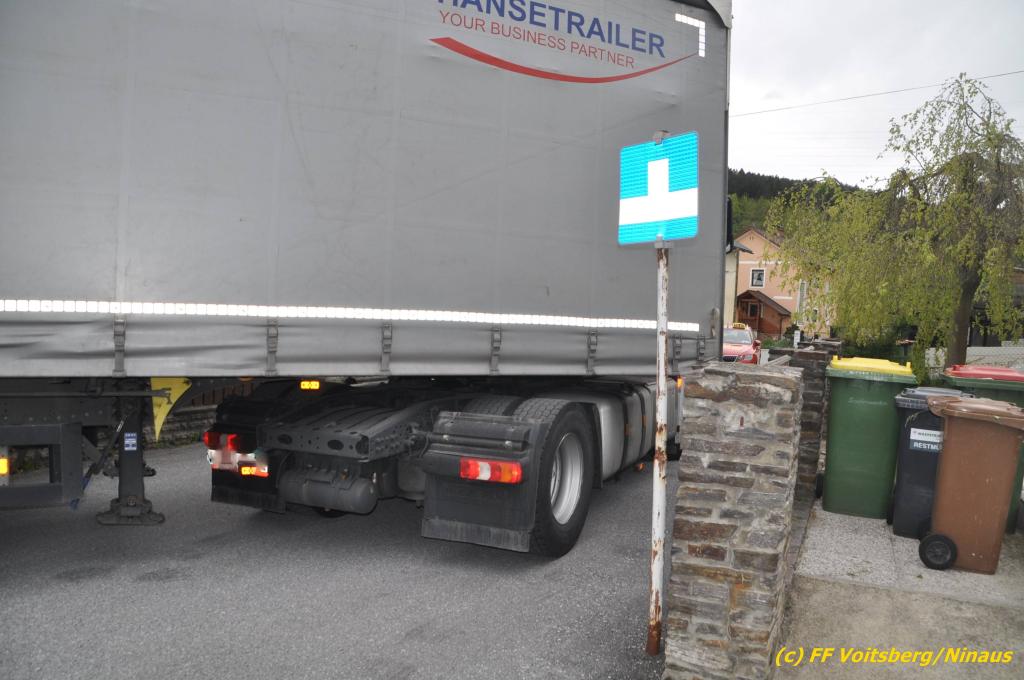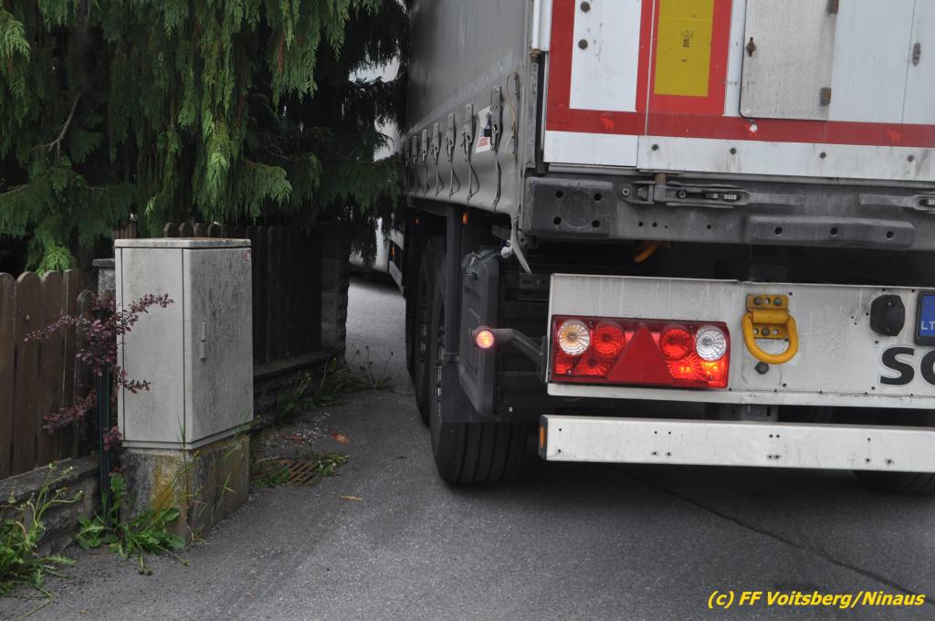 VOITSBERG, am 30.04.2019 Die FF Voitsberg wurde am Dienstag, 30. April 2019 kurz vor 9 Uhr zu einer Hilfeleistung gerufen. Ein LKW-Lenker aus Litauen fuhr trotz mehrfacher Verbots- und Gebotsschilder aufgrund des Vorschlages seines Navi in die Lindenhofgasse, weiter in den Weidenweg und blieb bei der Kreuzung mit der Erlengasse stecken. Er konnte weder vor noch zurück. Mit dem WLF-Kran wurde der Sattelschlepper aus seiner misslichen Situation gehoben und von den Feuerwehrkameraden durch die Erlengasse zu seinem Ziel gelotst. Schaden entstand keiner. Eingesetzte Kräfte unter Einsatzleiter OBI DI (FH) Bernd Unger: FF Voitsberg mit 7 Kameraden Text und Fotos: Walter Ninaus, FF Voitsberg