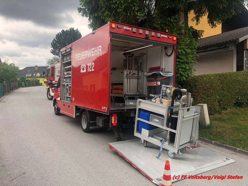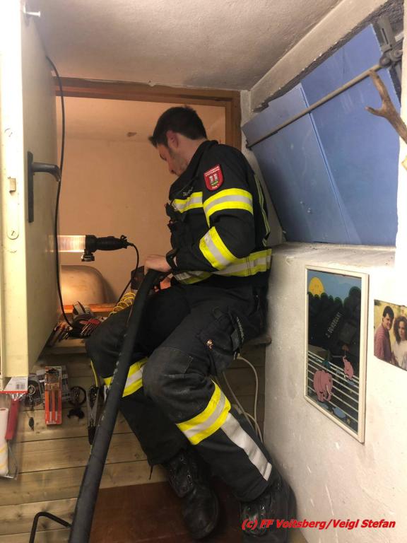 VOITSBERG, am 17.05.2019 Die FF Köflach wurde in den späten Vormittagsstunden am Freitag, 17.5.2019 zu einem Einsatz in die Dillacherstrasse in Köflach seitens der LLZ alarmiert. Beim Befüllen eines Tanks trat im Keller eines Wohnhauses Heizöl aus und floss in die Auffangwanne. Nach der Erkundung des Einsatzleiters forderte dieser zwecks Hilfeleistung die FF Voitsberg als zuständige Gefahrenstützpunkt-Feuerwehr an. Gemeinsam wurde das im Auffangbecken befindliche Heizöl abgepumpt, mit Bindemittel gebunden und fachgerecht entsorgt. Text: Walter Ninaus, FF Voitsberg Fotos: Stefan Veigl, FF Voitsberg