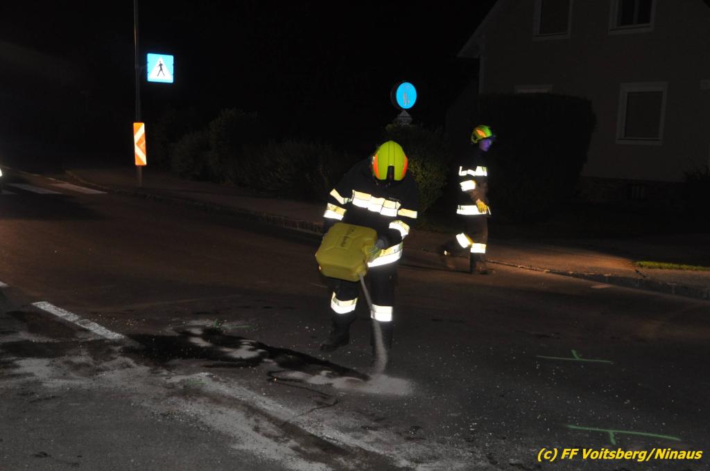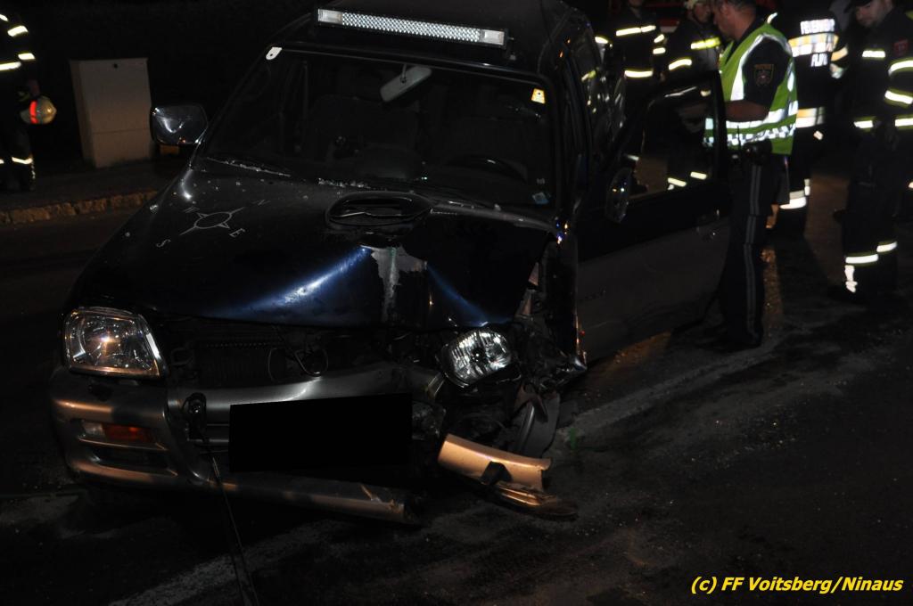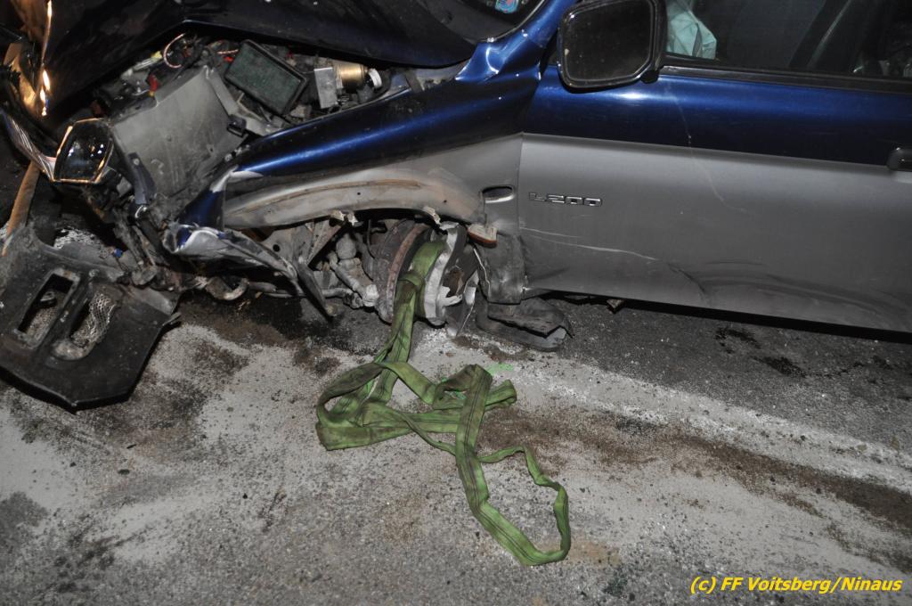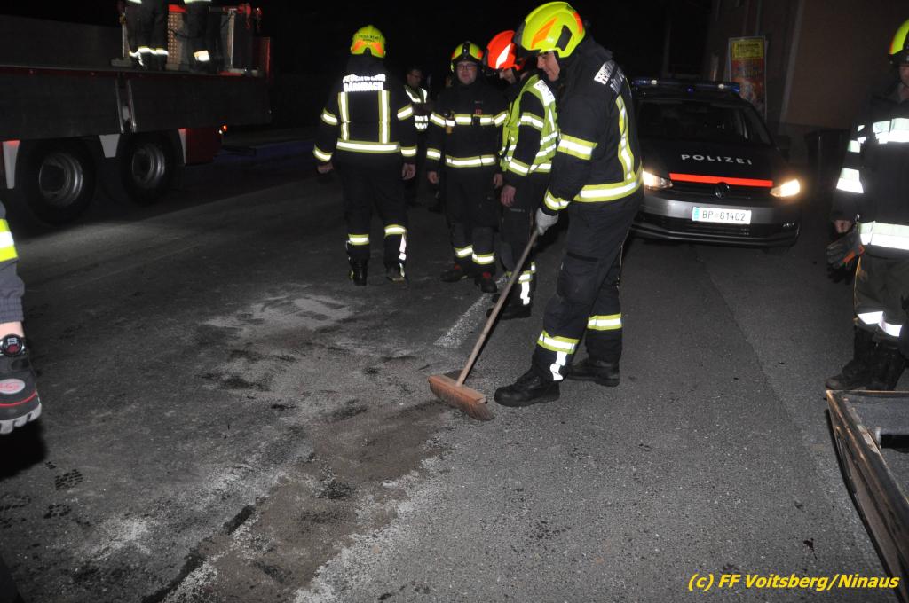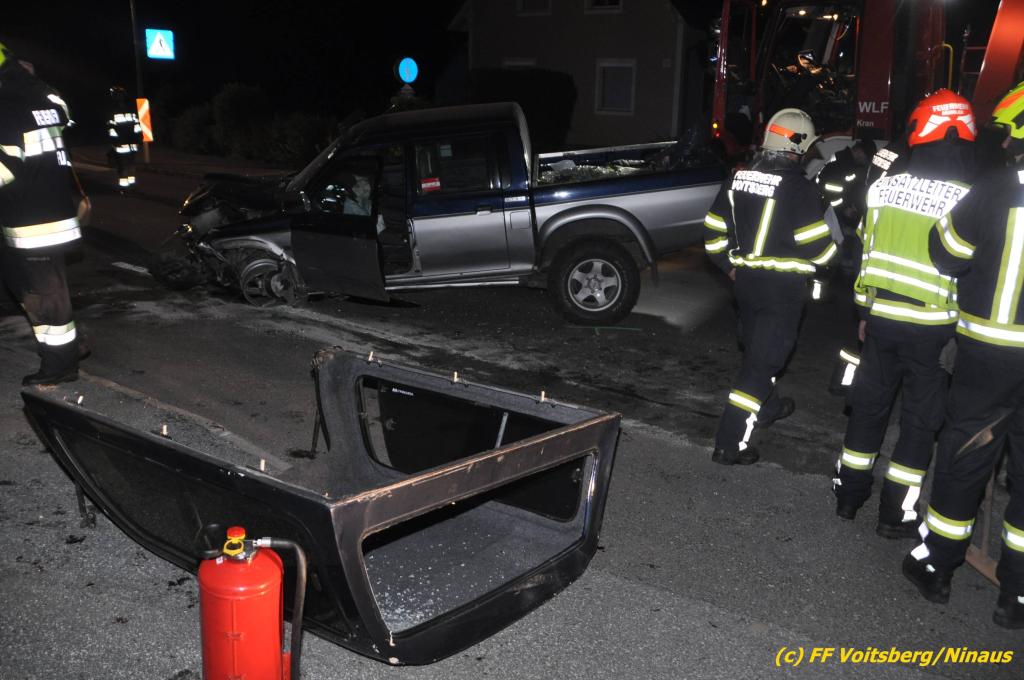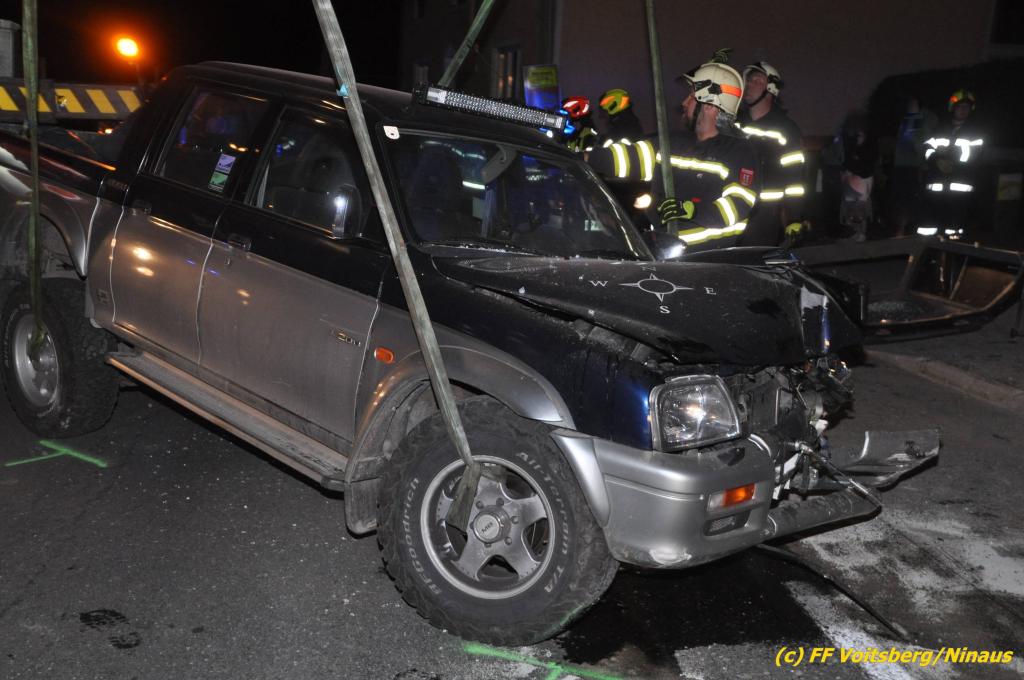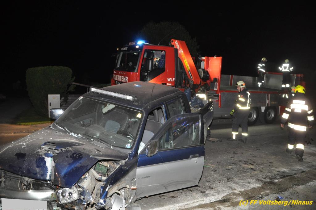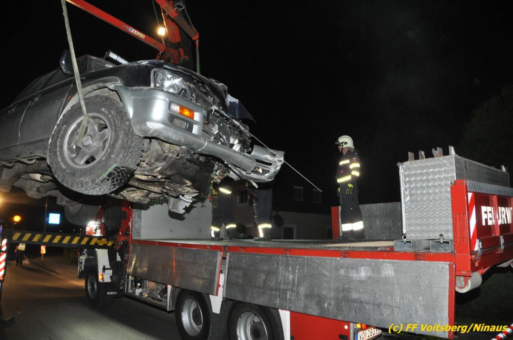 VOITSBERG, am 09.06.2019 Am Sonntag, 9. Juni 2019 kurz vor 1 Uhr früh ereignete sich auf der Kainacherstrasse in Bärnbach ein schwerer Verkehrsunfall. Ein Lenker eines geländegängigen Fahrzeuges verlor die Herrschaft über sein Fahrzeug, kam auf die linke Straßenseite, touchierte dort einen parkenden Pkw und in weiterer Folge stieß er mit voller Wucht gegen ein Wartehaus an einer Bushaltestelle. Dabei wurden die dort aufgestellten betonierten Blumenkisterl gegen ein weiteres Auto geschleudert. Beide parkenden Pkw wurden schwer beschädigt, ebenfalls das Wartehaus. Das Unfallauto kam sodann mitten auf der Landesstrasse zu stehen. Der Lenker konnte das Fahrzeug mit Verletzungen unbestimmten Grades verlassen und wurde mit dem Roten Kreuz Voitsberg in ein Krankenhaus gebracht. Die erstalarmierten Feuerwehren Bärnbach und Afling sicherten die Unfallstelle ab und bauten einen Brandschutz auf. Gleichzeitig wurden ausgeflossene Betriebsmittel gebunden und in späterer Folge fachgerecht entsorgt. Herumliegende Wrackteile wurden eingesammelt. Zwecks Bergung des schwer beschädigten Unfallwracks wurde das WLF-Kran der FF Voitsberg angefordert. Da weiterhin Betriebsmittel austraten, wurde das Fahrzeug auf einem gesicherten Stellplatz abgestellt. Die polizeilichen Erhebungen wurden von der Polizei Voitsberg durchgeführt. Eingesetzt unter Einsatzleiter Michael Kleindienst (FF Bärnbach) waren insgesamt 25 Einsatzkräfte der Feuerwehren Bärnbach, Afling und Voitsberg. Text und Fotos: Walter Ninaus, FF Voitsberg
