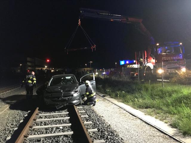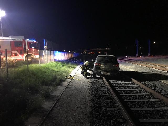 VOITSBERG, am 23.07.2019 Aus ungeklärter Ursache kam am Dienstag, 23. Juli 2019 kurz nach 22 Uhr ein PKW in der Bahnhofstraße in Voitsberg rechts von der Fahrbahn ab, durchstieß einen Metallzaun und landete anschließend auf den Schienen der GKB-Bahnstrecke. Das schwer beschädigte Fahrzeug wurde mit dem WLF-Kran der FF Voitsberg geborgen und an einem gesicherten Ort abgestellt. Der Lenker blieb glücklicherweise nahezu unverletzt und wurde zur Begutachtung ins LKH Voitsberg verbracht. Während der Bergemaßnahmen war der Zugverkehr vorrübergehend eingestellt. Eingesetzte Kräfte unter Einsatzleiter OLM Christian Buchegger waren 7 Mann der FF Voitsberg, Beamte der Polizei Voitsberg, das Rotes Kreuz Voitsberg-Köflach mit Notarzt.