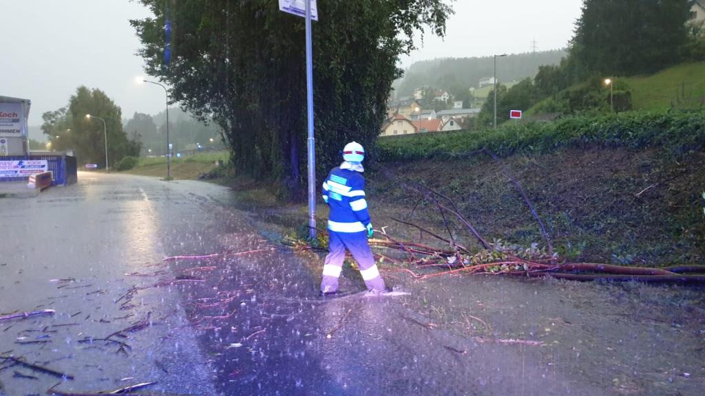 VOITSBERG, am 31.07.2019 Die FF Voitsberg wurde zu einer Freimachung der Ruhmannstrasse alarmiert, nachdem sich ein kleiner Baum nach einem Sturm auf der Fahrbahn befand.