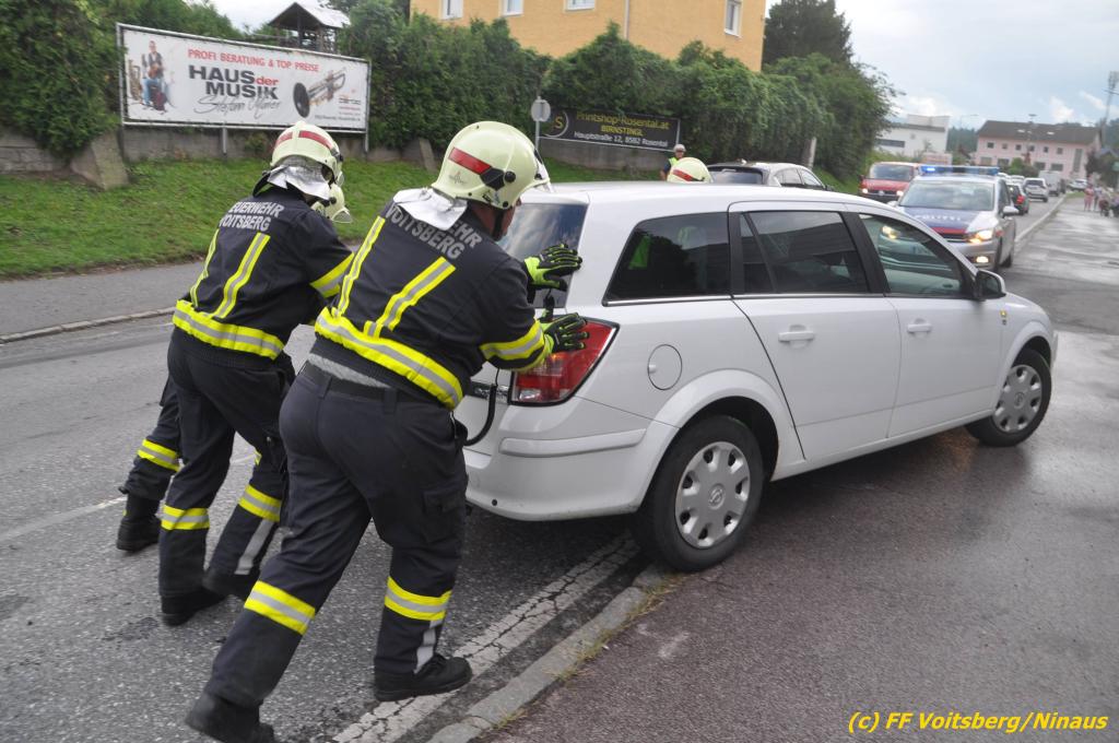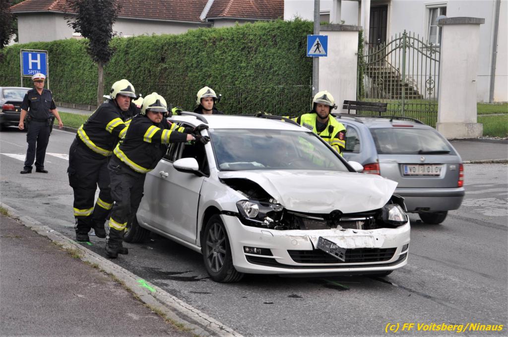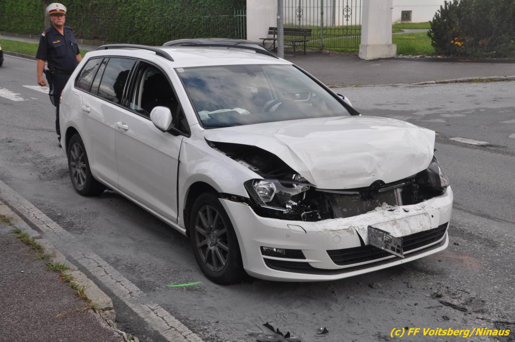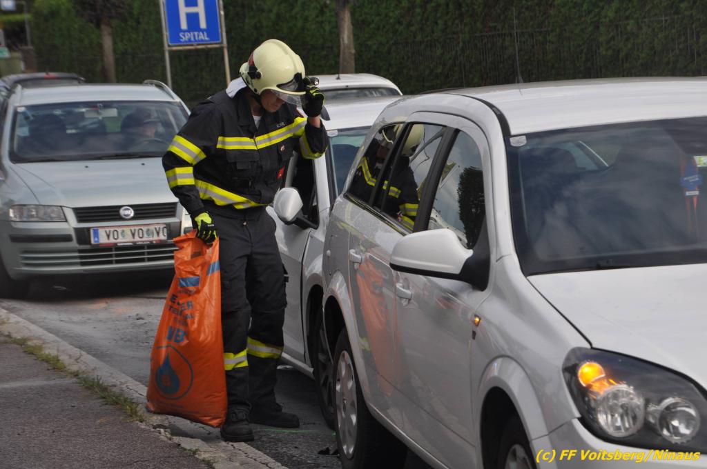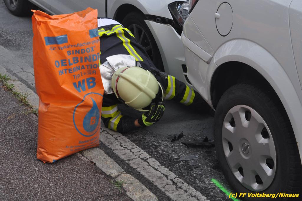 VOITSBERG, am 02.08.2019 Am Freitag, 2. August 2019 um 18:09 Uhr wurde die FF Voitsberg in die C.v.Hötzendorfstrasse zu einem Verkehrsunfall alarmiert. Bei einem Auffahrunfall waren drei Fahrzeuge beteiligt. Die Fahrzeuge wurden nach den Erhebungen der Polizei von der Straße gebracht. Herumliegende Wrackteile wurden eingesammelt und ausgelaufene Betriebsmittel gebunden und fachgerecht entsorgt. Verletzt wurde niemand. Durch die Bergungs- und Vermessungsarbeiten kam es im gesamten Stadtgebiet Voitsberg zu einem ausgedehnten Stau. Eingesetzt unter der Einsatzleitung von Harald Kremaucz waren 8 Kameraden der FF Voitsberg sowie zwei Streifen der Polizei.
