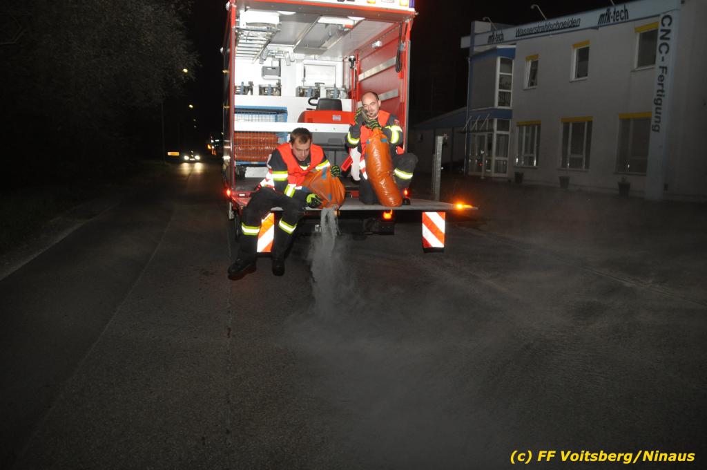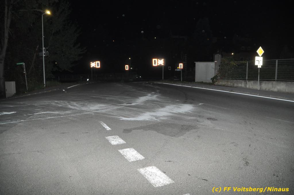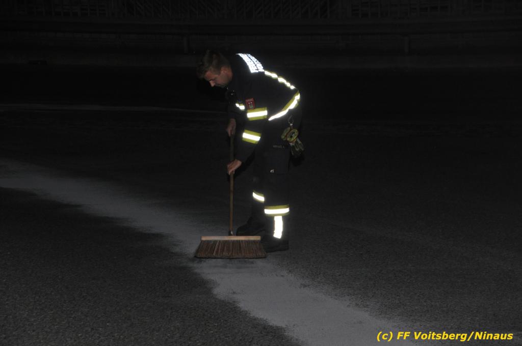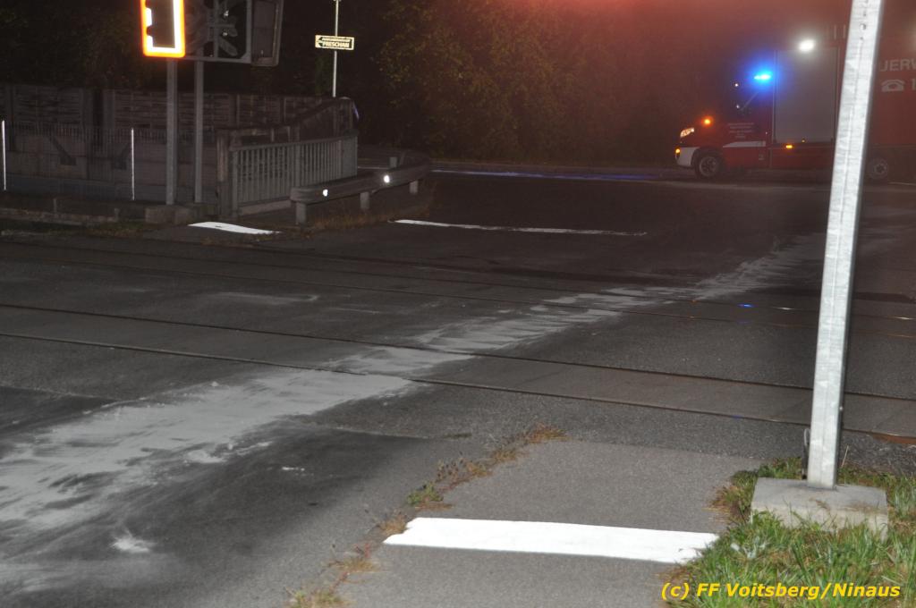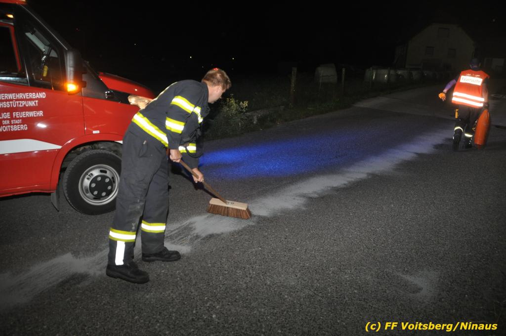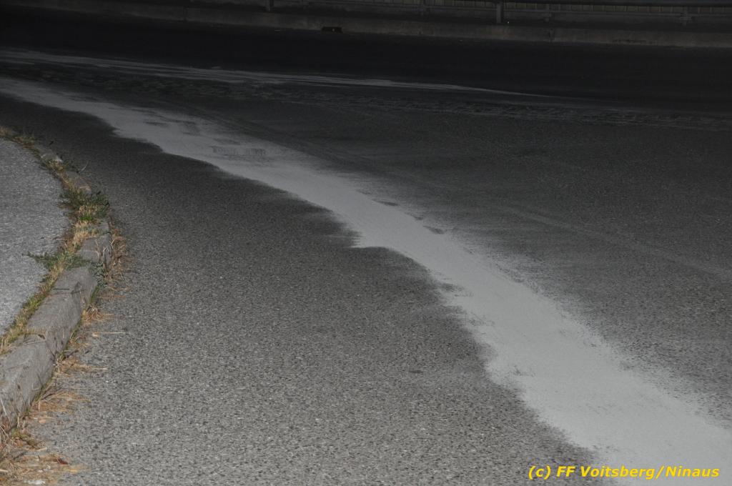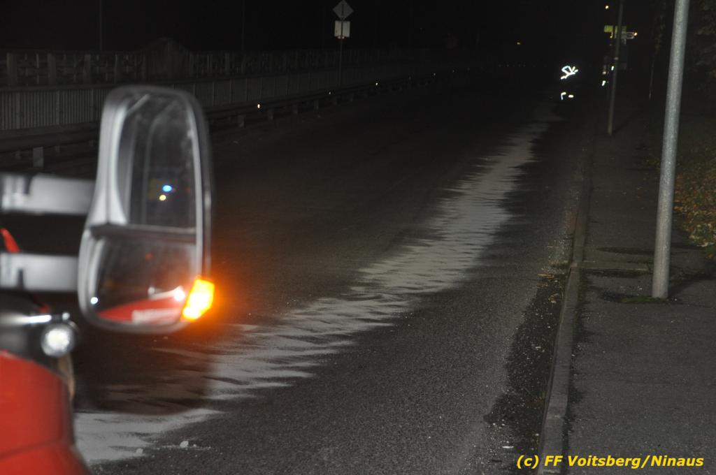 VOITSBERG, am 01.10.2019 Aufgrund eines technischen Gebrechens verlor am 1. Oktober um ca. 20 Uhr ein Kfz Motoröl und verschmutzte die Ruhmannstrasse und die Arnsteinstrasse in Voitsberg auf einer Gesamtlänge von ca. 500 m. Die alarmierte Feuerwehr Voitsberg rückte aus, um die ausgeflossenen Betriebsmittel zu binden und mit einer feuerwehreigenen Kehrmaschine einzusammeln. Das verunreinigte Bindemittel wurde fachgerecht entsorgt. Ein Mitarbeiter des städtischen Bauhofes sicherte die Gefahrenstellen mit Hinweisschilder „Ölspur“ ab.