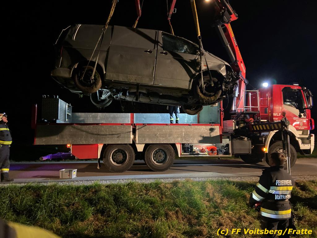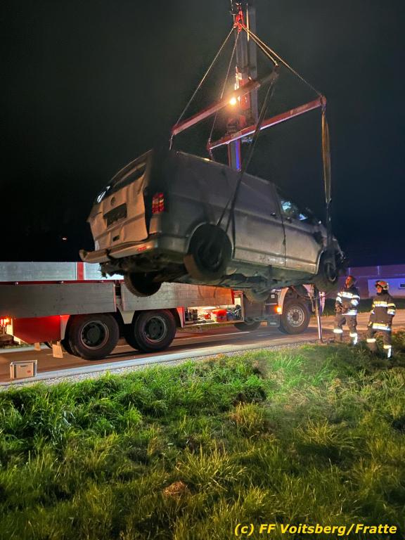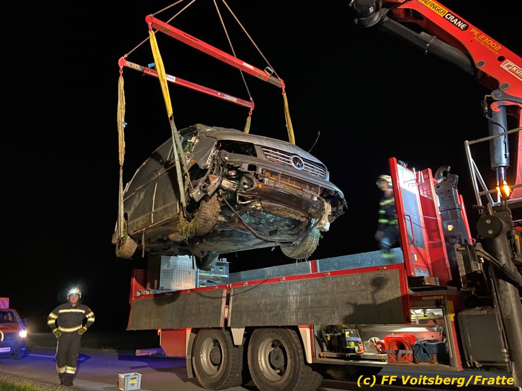 Fahrzeugbergung über Anforderung der einsatzleitenden Feuerwehr Södingberg mit dem WLF-Kran