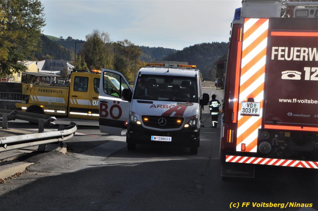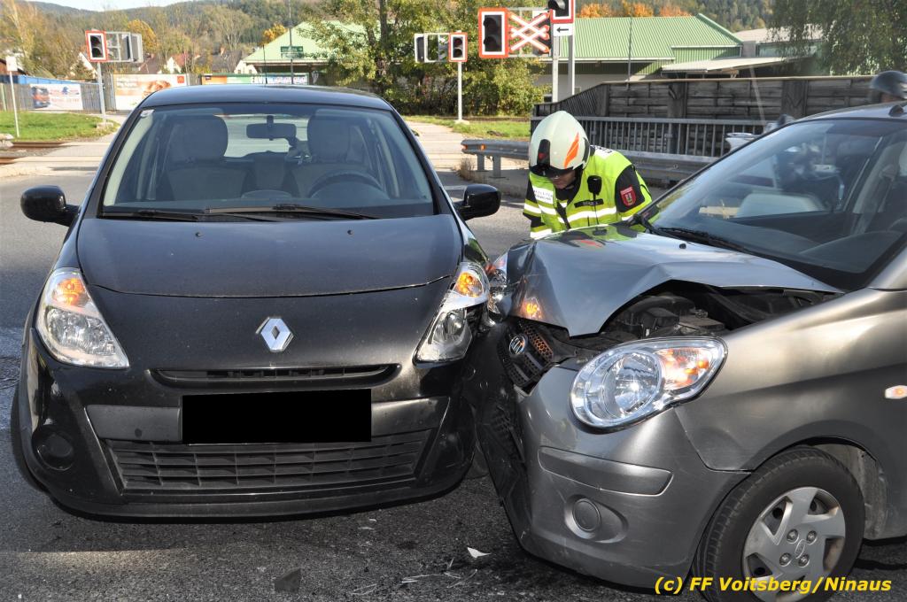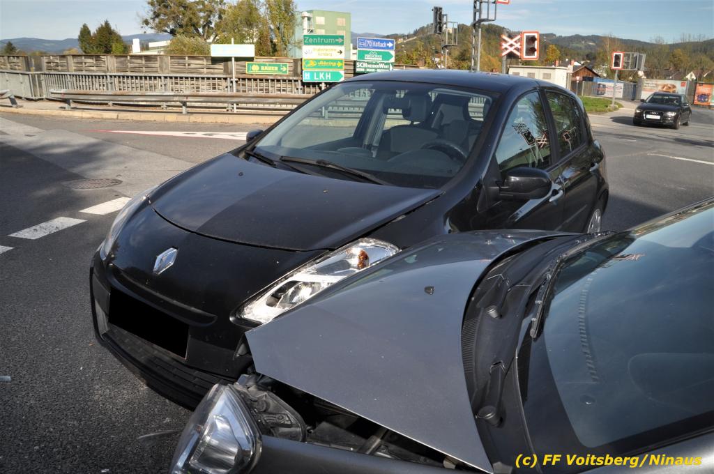 VOITSBERG, am 20.10.2019 Am Sonntag, 20. Oktober kurz nach 10 Uhr kam es bei der Kreuzung Arnsteinstrasse – Lindenhofgasse in Voitsberg zu einem Zusammenstoß zweier PKW. Beide Fahrzeuge wurden durch den Aufprall schwer beschädigt. Verletzt wurde niemand. Die FF Voitsberg brachte beide Fahrzeuge von der Straße, band ausgeflossene Betriebsmittel und reinigte die Fahrbahn von herumliegenden Wrackteilen. Beide Fahrzeuge wurden von Autofahrerclubs abgeschleppt. Die Polizei Voitsberg führte die Erhebungen durch und regelte den Verkehr. Eingesetzt unter Einsatzleiter OLM Christian Buchegger waren 7 KameradInnen der FF Voitsberg. Text und Fotos: Walter Ninaus/FF Voitsberg