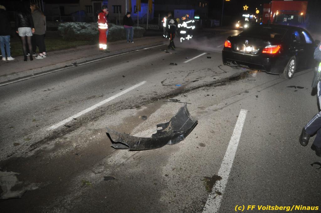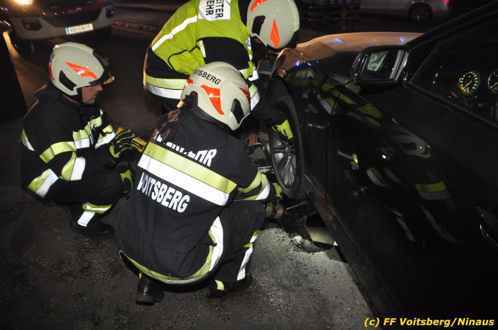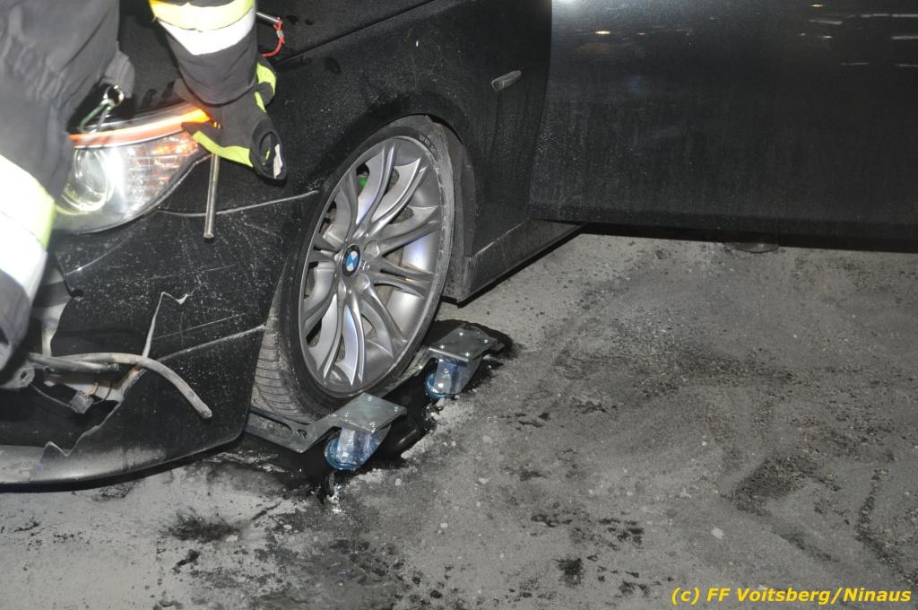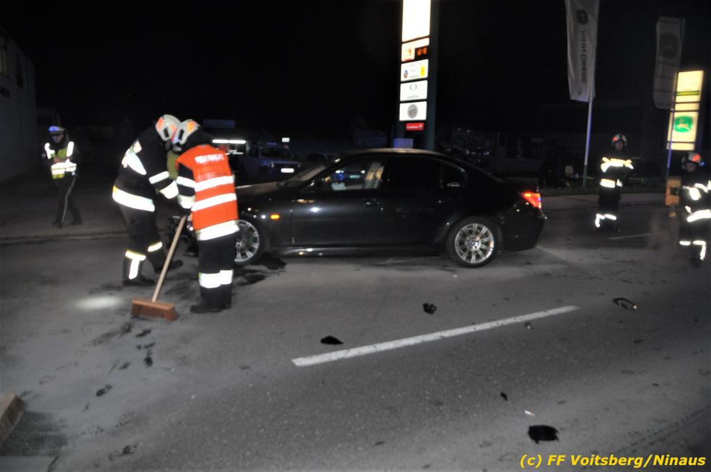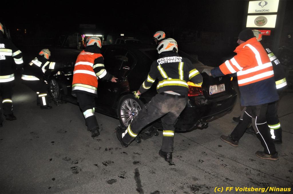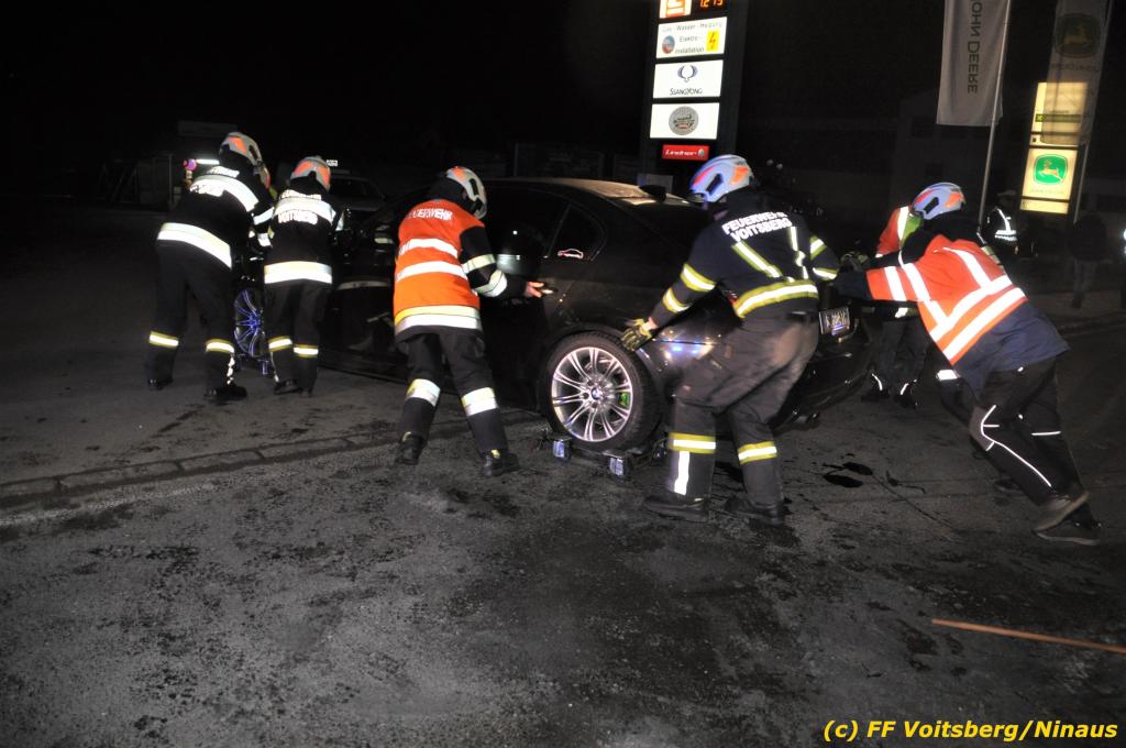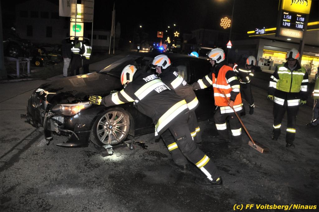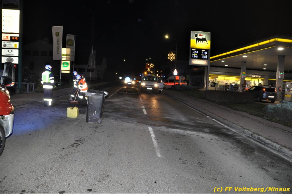 VOITSBERG, am 29.11.2019 Die FF Voitsberg wurde am Freitag, 29. November 2019 um 21:50 Uhr zu einem Verkehrsunfall in die Grazer Vorstadt in Voitsberg über die LLZ Steiermark alarmiert. Ein Pkw geriet auf eine Verkehrsinsel, beschädigte zwei Verkehrszeichen und kam nach ca. 40 m auf der Gemeindestraße zu stehen. Dabei gelangten Betriebsmittel auf die Fahrbahn und verunreinigten sie. Mit Bindemittel wurden diese gebunden und fachgerecht entsorgt. Herumliegende Wrackteile wurde eingesammelt und vom städtischen Bauhof abtransportiert. Das beschädigte Fahrzeug wurde mit vier Abschlepprollern von der Straße geschoben und abgestellt, sowie die Batterie abgeklemmt. Verletzt wurde niemand.