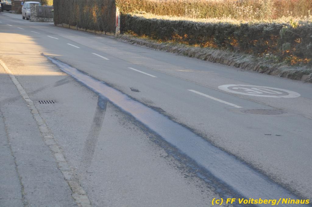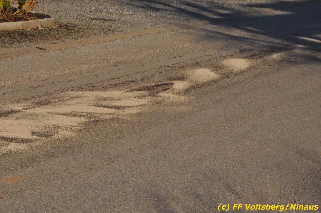 Eingesetzt unter Einsatzleiter BR Ing. Klaus Gehr waren insgesamt 8 Kameraden der FF Voitsberg, 4 Arbeiter der Baufirma und 2 Bedienstete des Bauhofes Voitsberg, welche Gefahrenschilder „Ölspur“ aufstellten.