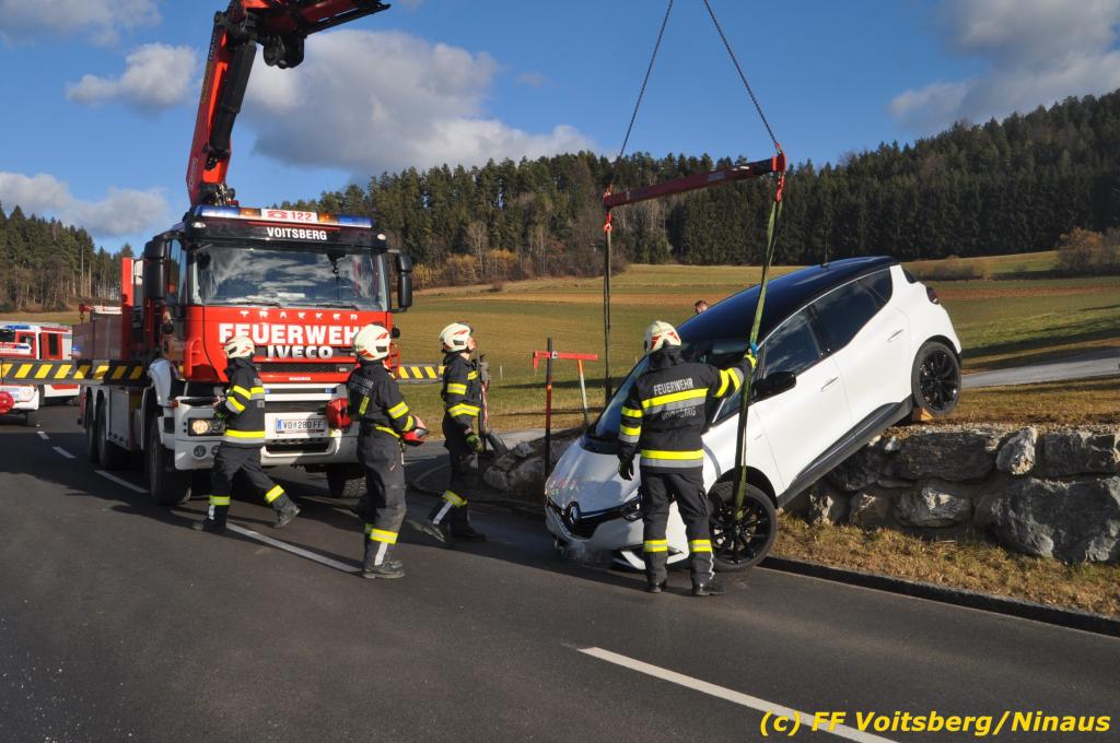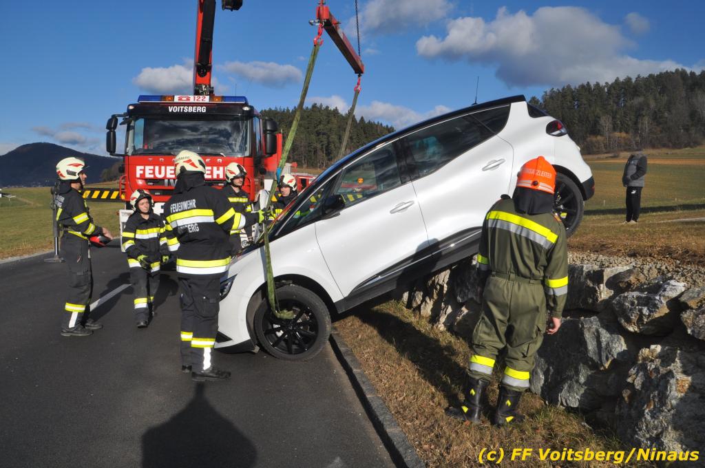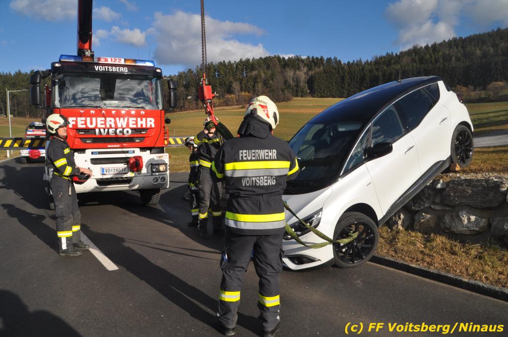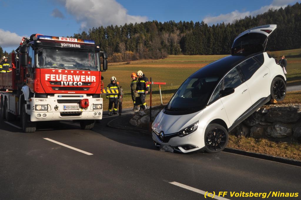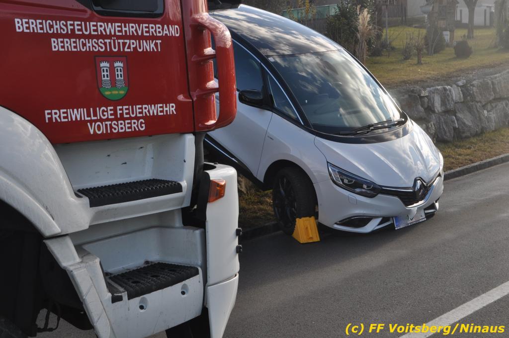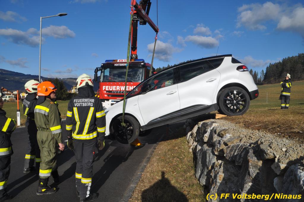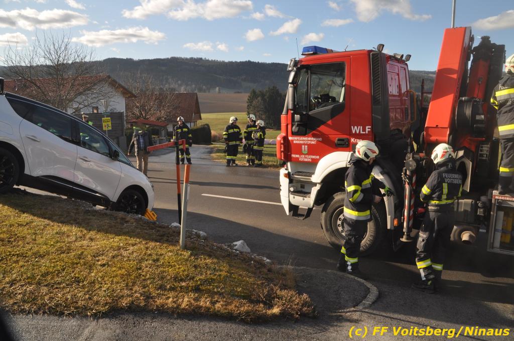 VOITSBERG, am 11.01.2020 Am Samstag, 11. Jänner 2020 in den Vormittagsstunden kam ein PKW aus ungeklärten Gründen in der St. Martinerstrasse in Köflach von einer Privatstrasse ab, stürzte auf die Landesstrasse L 346 und blockierte diese teilweise. Die verständigte FF Köflach sicherte das Fahrzeug und alarmierte über die LLZ Steiermark das WLF Voitsberg.
