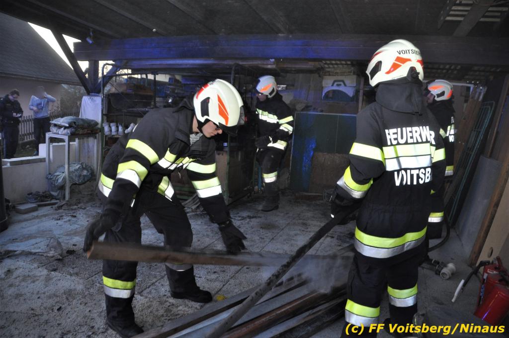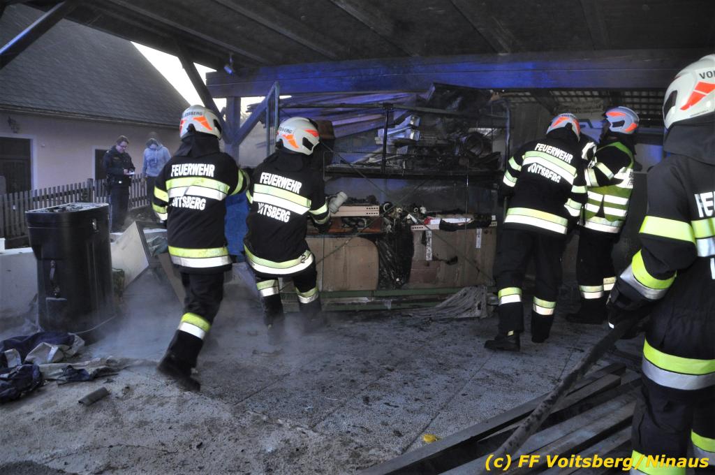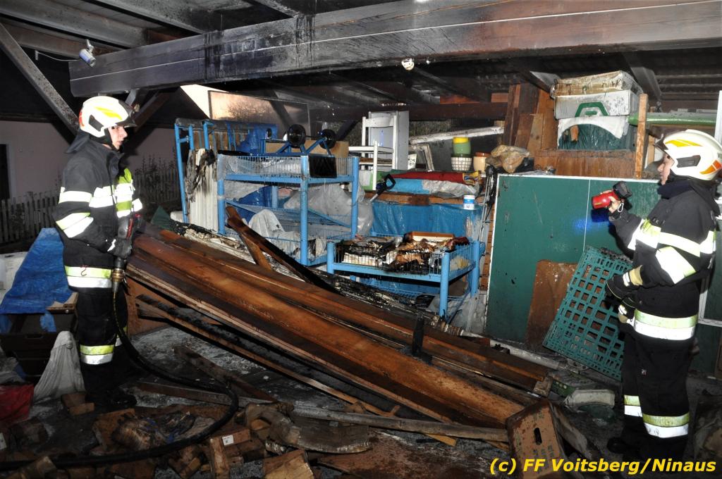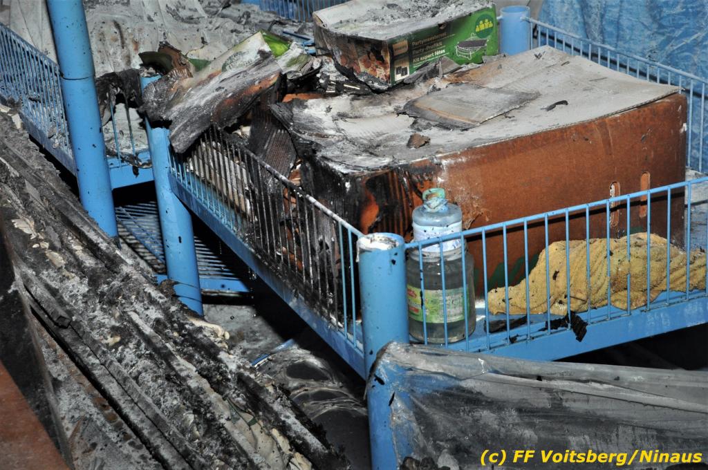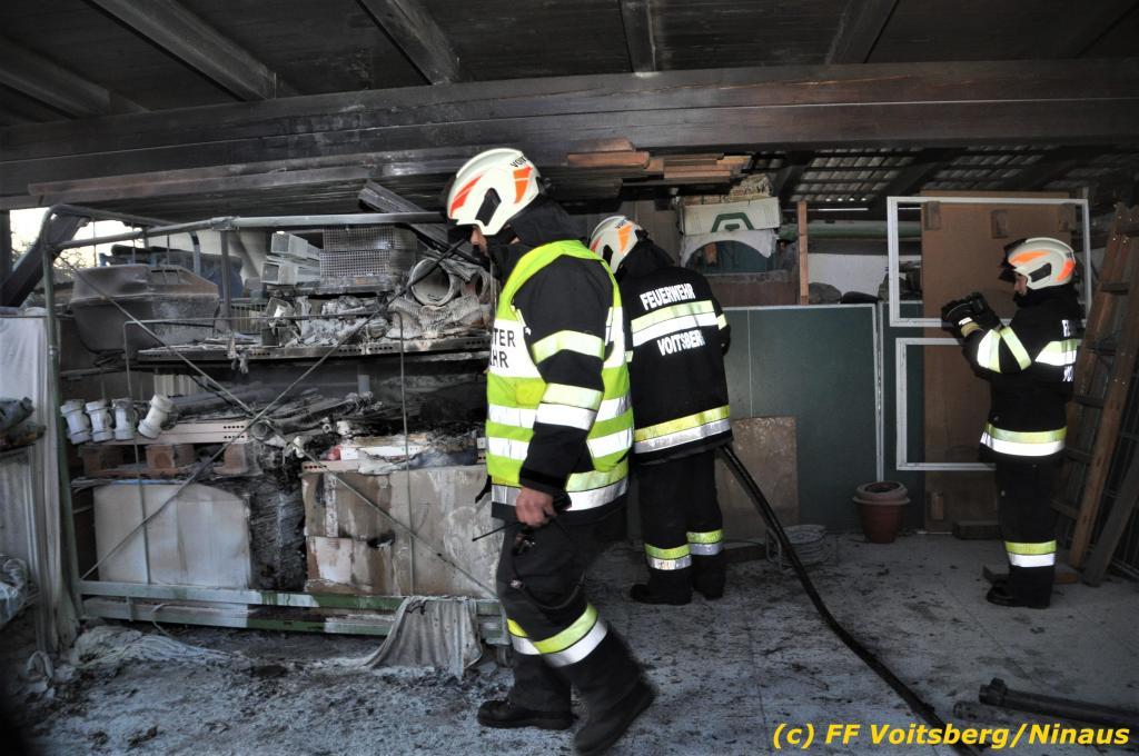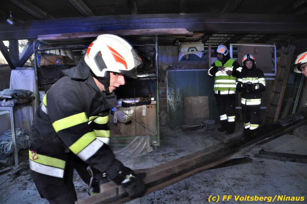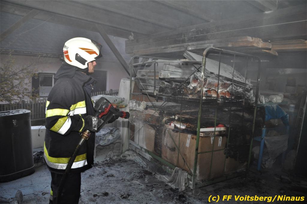Er alarmierte die FF Voitsberg, welche unter Einsatz eines Hochdruckrohres den Brand rasch unter Kontrolle bringen konnte. Gelagertes Material, welches zum Versand vorbereitet war, und das Dach des Objektes wurden teilweise beschädigt