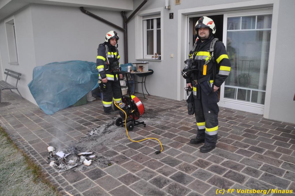 Die alarmierten Feuerwehren Voitsberg und Rosental führten Nachlöscharbeiten durch und kontrollierten die Räumlichkeiten mit einer Wärmebildkamera um etwaige Glutnester aufzuspüren.