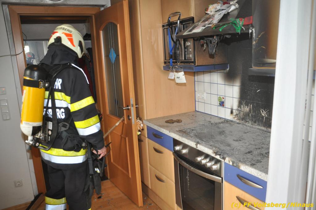 VOITSBERG, am 25.01.2020 In einer Wohnung eines Mehrparteienhauses in der Baumkirchnerstrasse in Voitsberg brach am Samstag, 25. Jänner 2020 kurz vor 10 Uhr in der Küche im Bereich des Elektroherdes ein Brand aus und griff auf den darüberliegenden Dunstabzug über. Während eine Mitbewohnerin die Hilfskräfte alarmierte löschte ein Bewohner des Hauses den Brand in der Entstehung und konnte größeren Schaden verhindern.