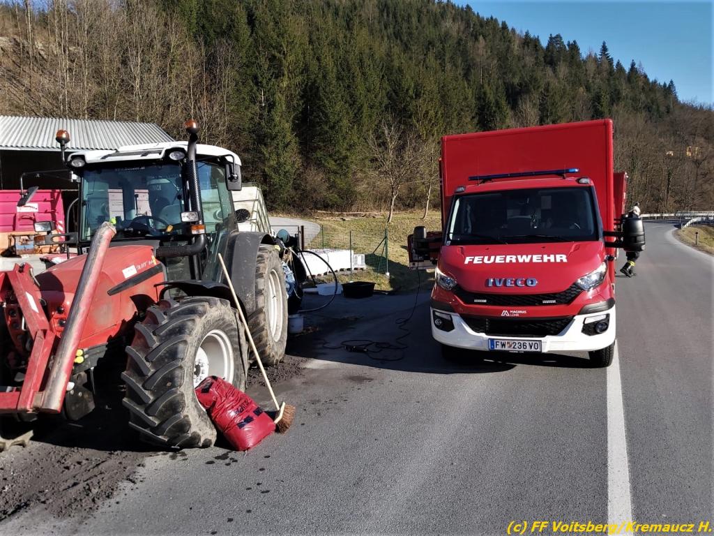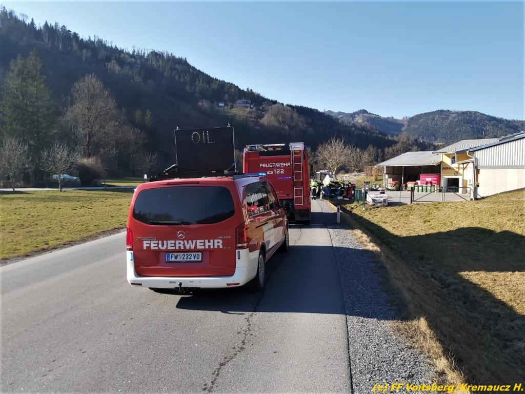 VOITSBERG, am 15.03.2020 Über Anforderung der einsatzleitenden Feuerwehr Kainach wurde die FF Voitsberg als zuständige Ölstutzpunktfeuerwehr am Sonntag, 15. März in den Nachmittagsstunden zu einem Einsatz mit dem Ölschadenfahrzeug in Kainach alarmiert.