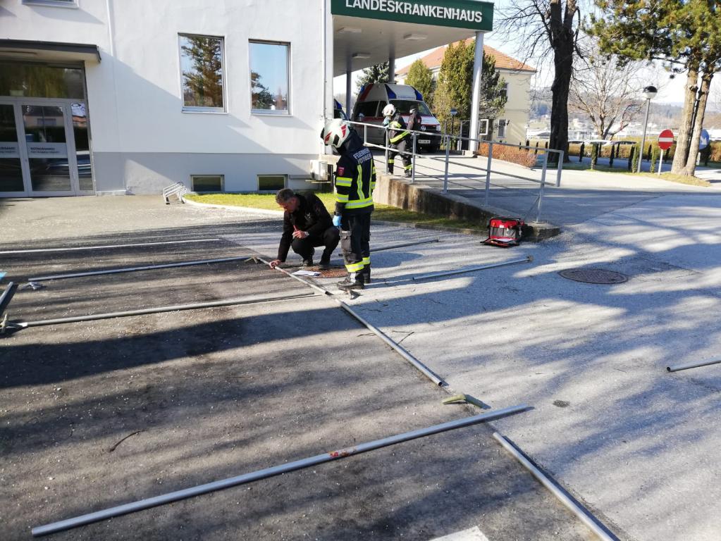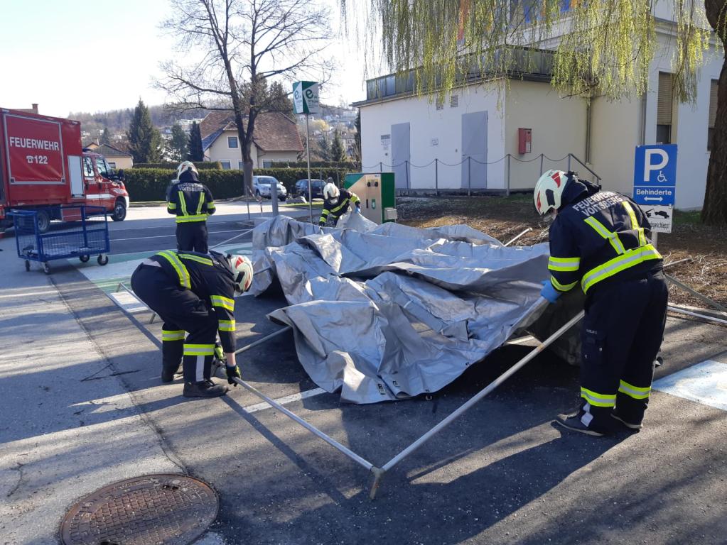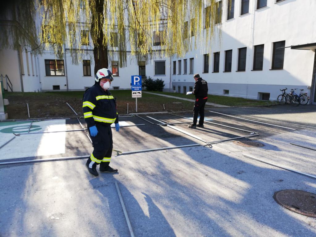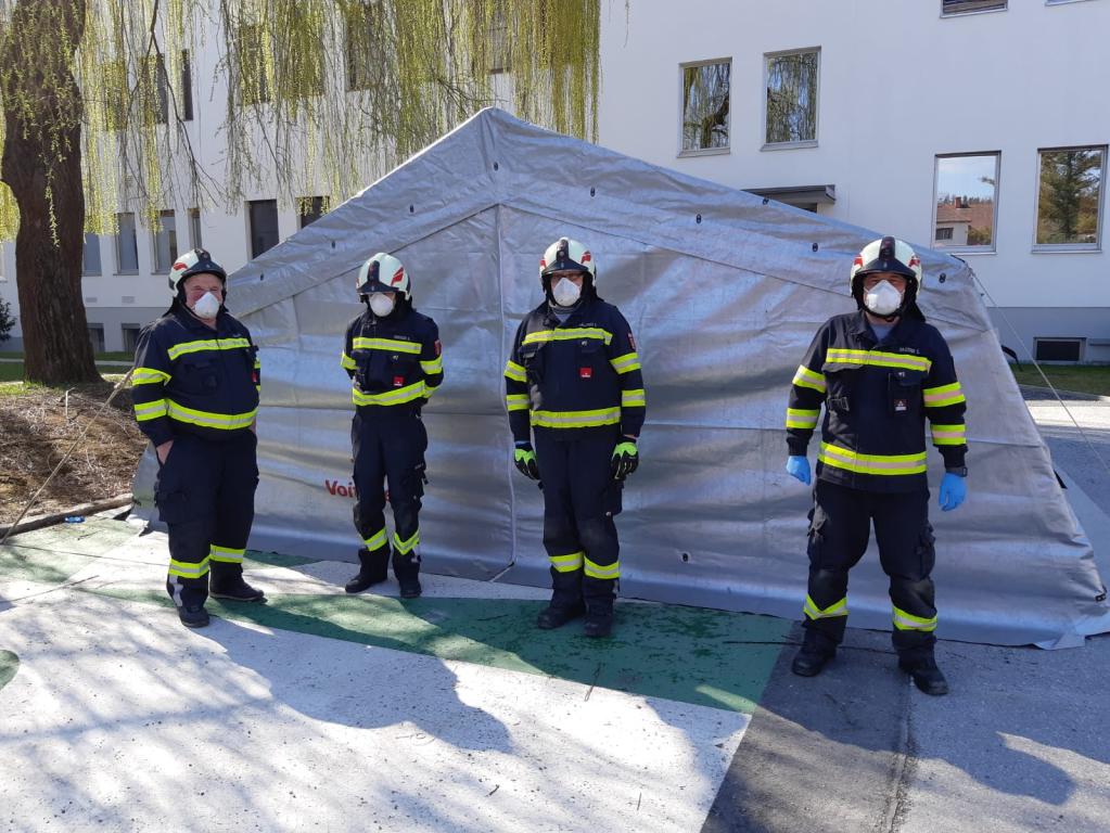 VOITSBERG, am 01.04.2020 Beim LKH Voitsberg wurde ein Zelt unter Einhaltung der gesetzlichen Schutzmaßnahmen aufgestellt. Es soll als Kontrollzelt dienen.