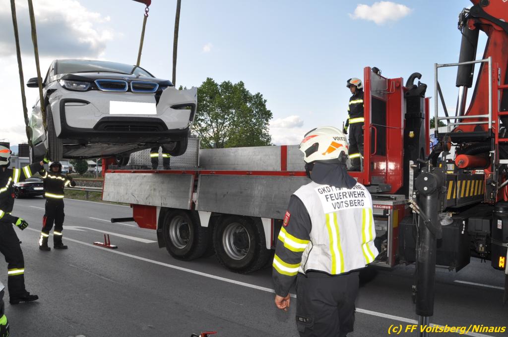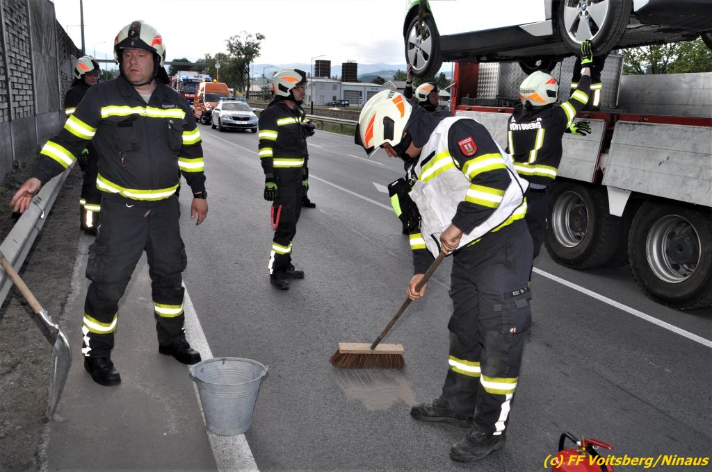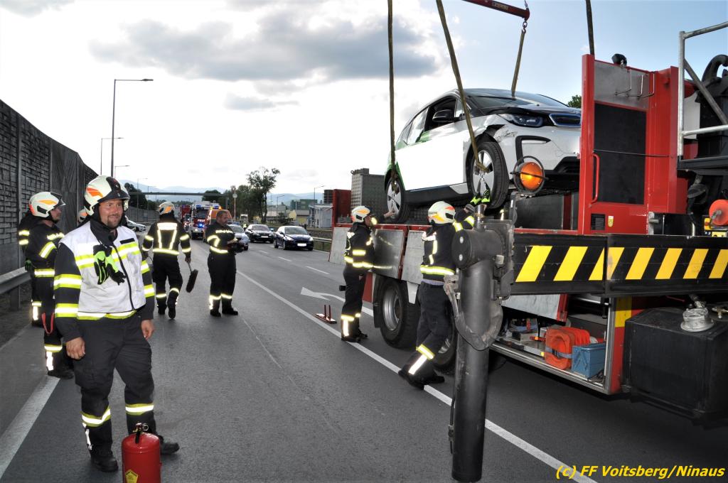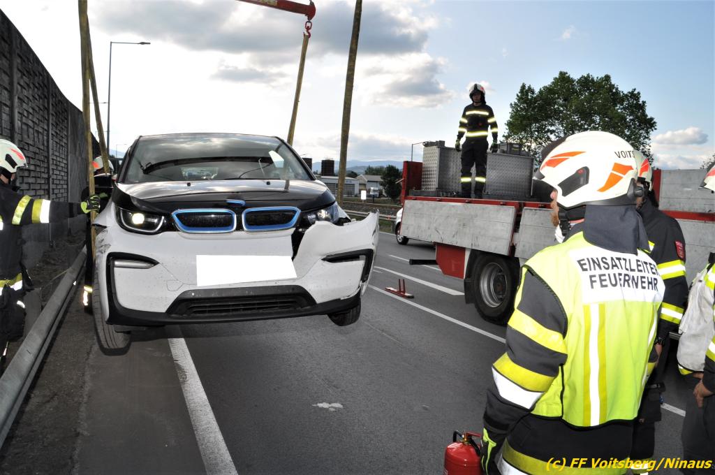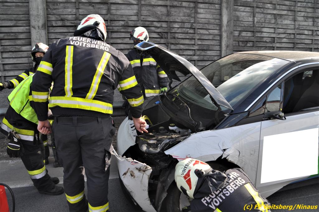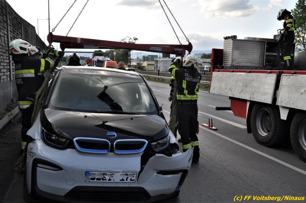 Zwecks Bergung und Absicherung der Unfallstelle wurden laut Alarmplan die Feuerwehren Voitsberg, Krems und Rosental alarmiert, wobei die FF Rosental wieder ins Rüsthaus einrücken konnte. Die Feuerwehren Voitsberg und Krems bauten einen Brandschutz auf, entfernten herumliegende Wrackteile und banden ausgelaufene Betriebsmittel. Da es sich bei PKW um ein Elektrofahrzeug handelte, musste es in eine Fachwerkstätte mit dem WLF Voitsberg zwecks Gefahr in Verzug überstellt werden.
