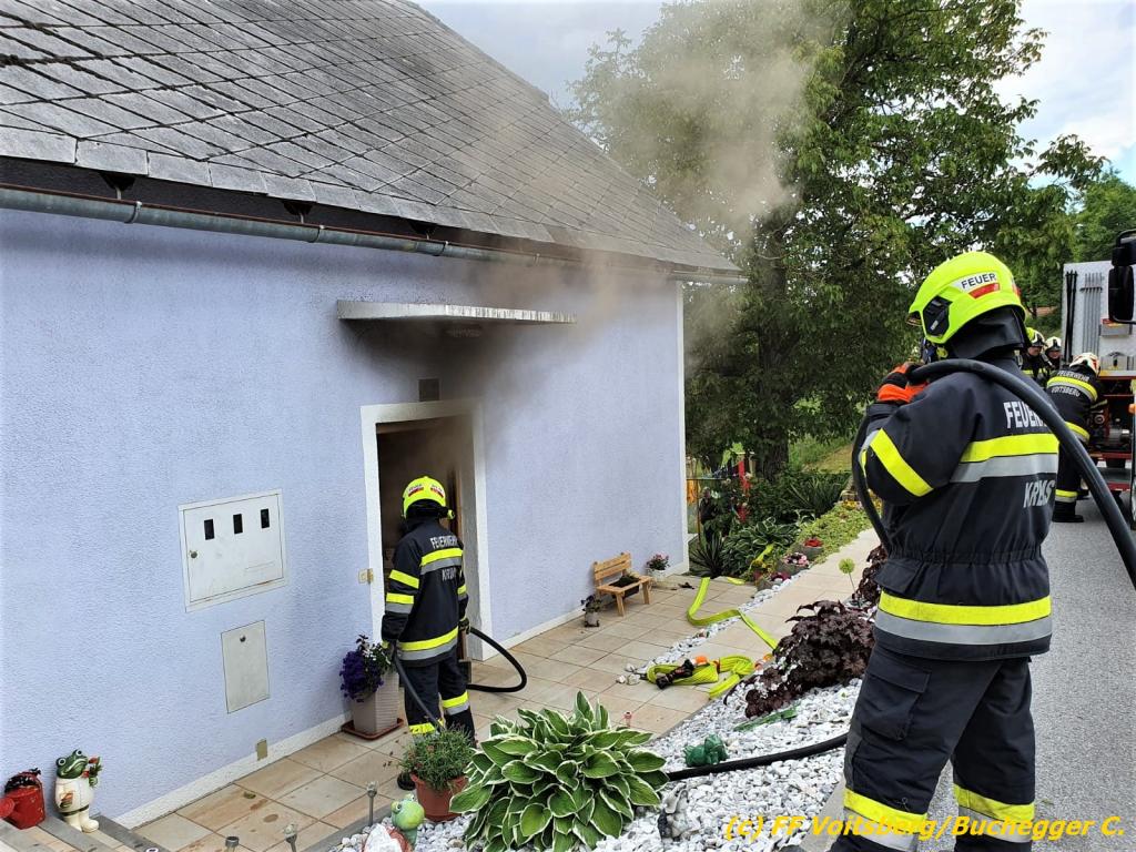 Bei Eintreffen der Einsatzkräfte drang dichter Rauch aus dem Erdgeschoss des Wohnhauses. Zwei Atemschutztrupps drangen umgehend ins Gebäude ein und führten die Brandbekämpfung durch. Anschließend wurde die Küche mit einer Wärmebildkamera nach Glutnestern abgesucht und das Gebäude mit einem Hochdrucklüfter rauchfrei gemacht. Durch das rasche Eingreifen der Einsatzkräfte konnte ein Übergreifen auf die restlichen Wohnräume verhindert werden. Der Hausbesitzer konnte sich selbstständig ins Freie retten und blieb unverletzt.