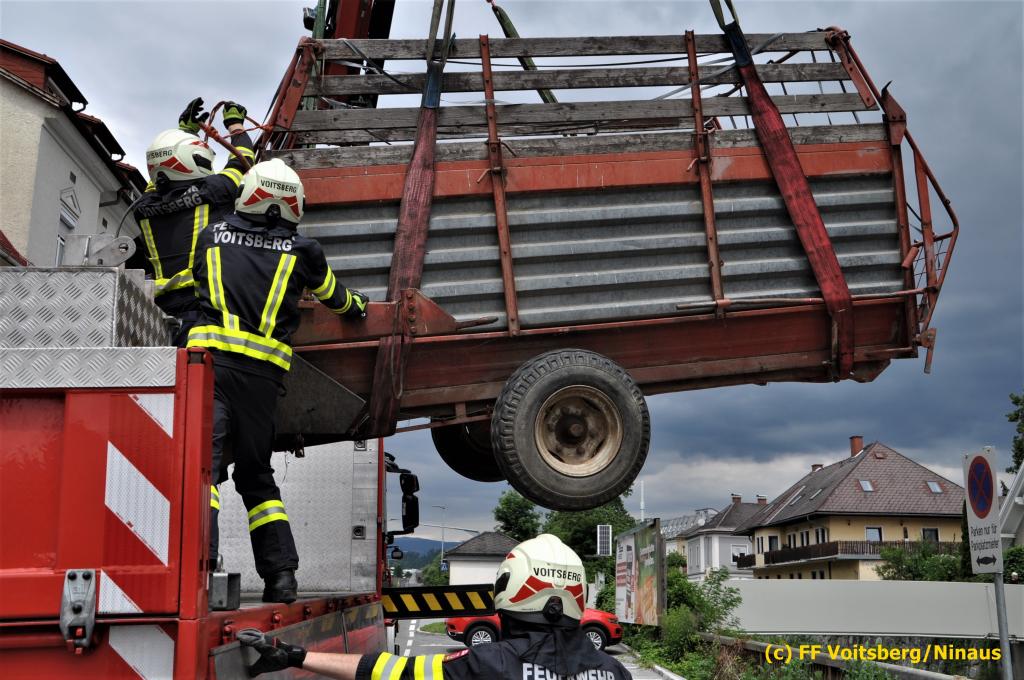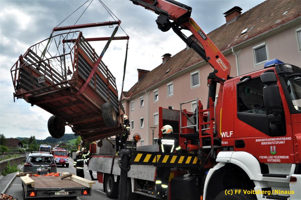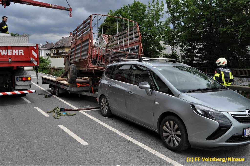 VOITSBERG, am 17.06.2020 Ein Pkw-Lenker überstellte am Mittwoch, 17. Juni 2020 kurz vor Mittag mit seinem mitgeführten Pkw-Anhänger einen auf der Ladefläche befindlichen landwirtschaftlichen Anhänger.