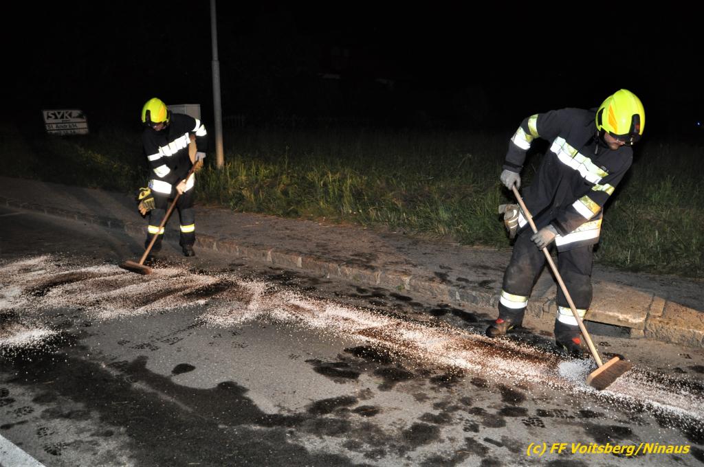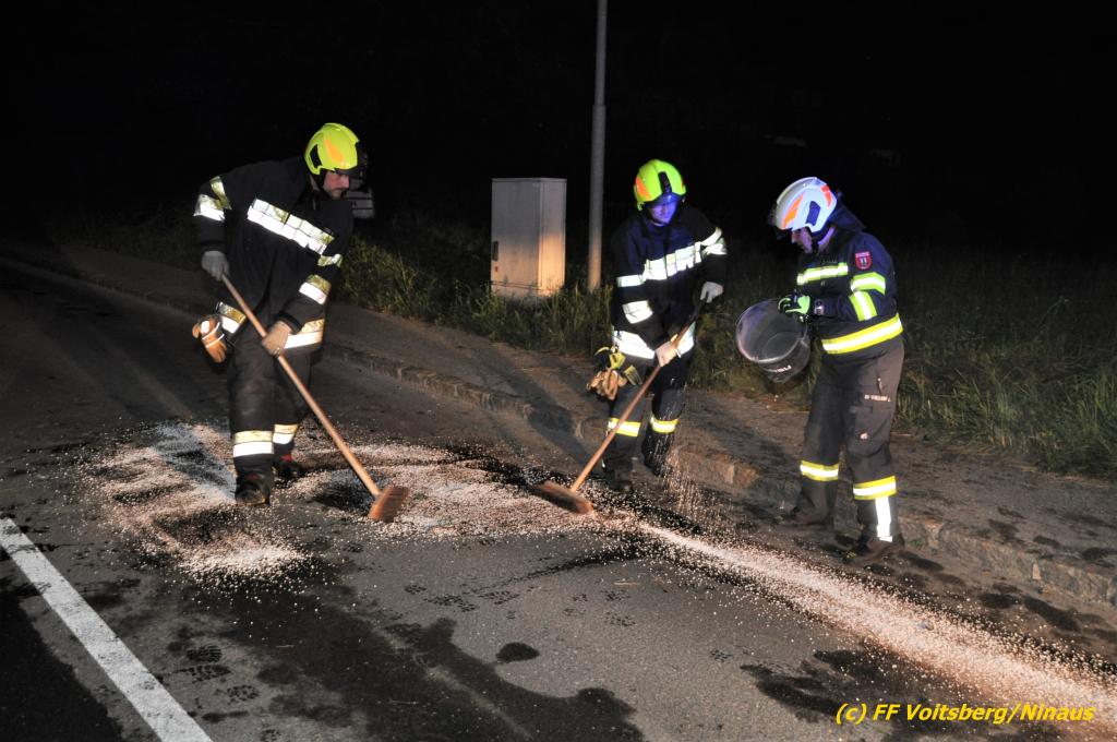 Die FF Afling baute einen Brandschutz auf und die FF Bärnbach sicherte die Unfallstelle ab, entfernte herumliegenden Wrackteile und band mit Bindemitteln ausgeflossene Betriebsmittel. Zwecks Bergung des schwer beschädigten Fahrzeuges wurde das WLF-Kran der FF Voitsberg nachalarmiert.