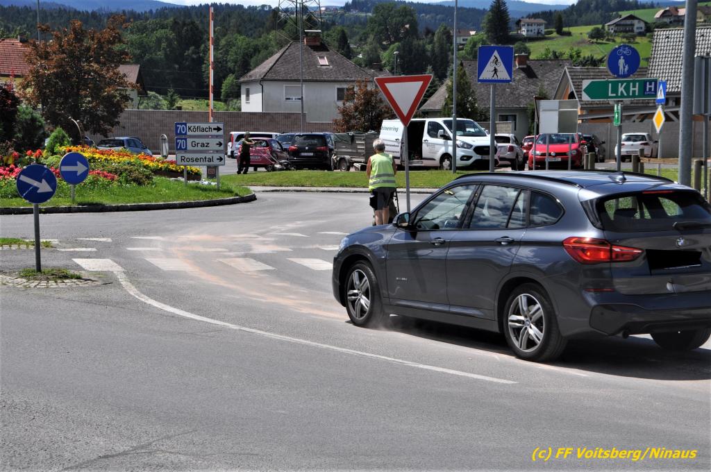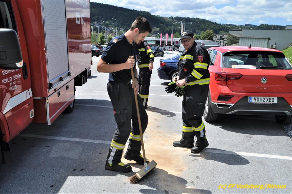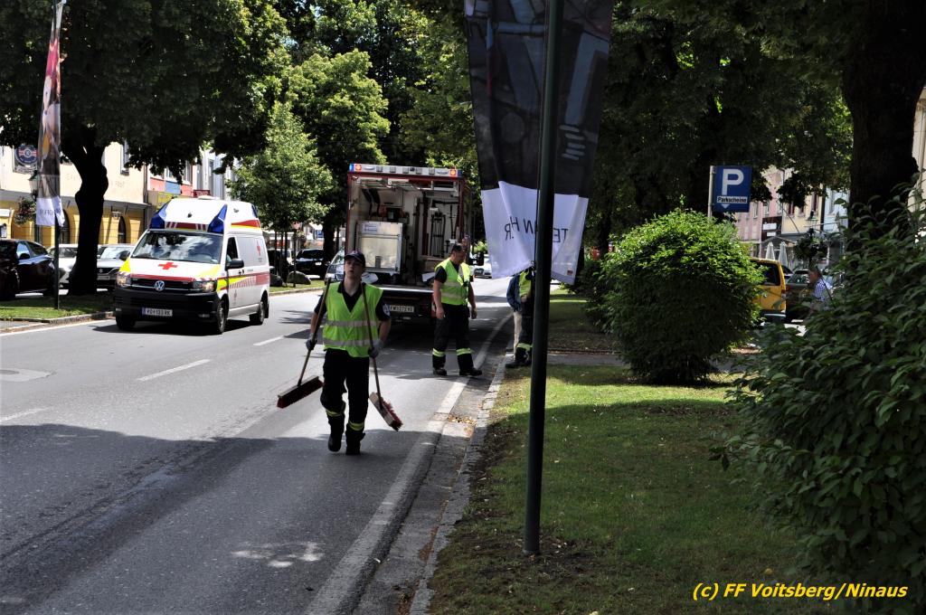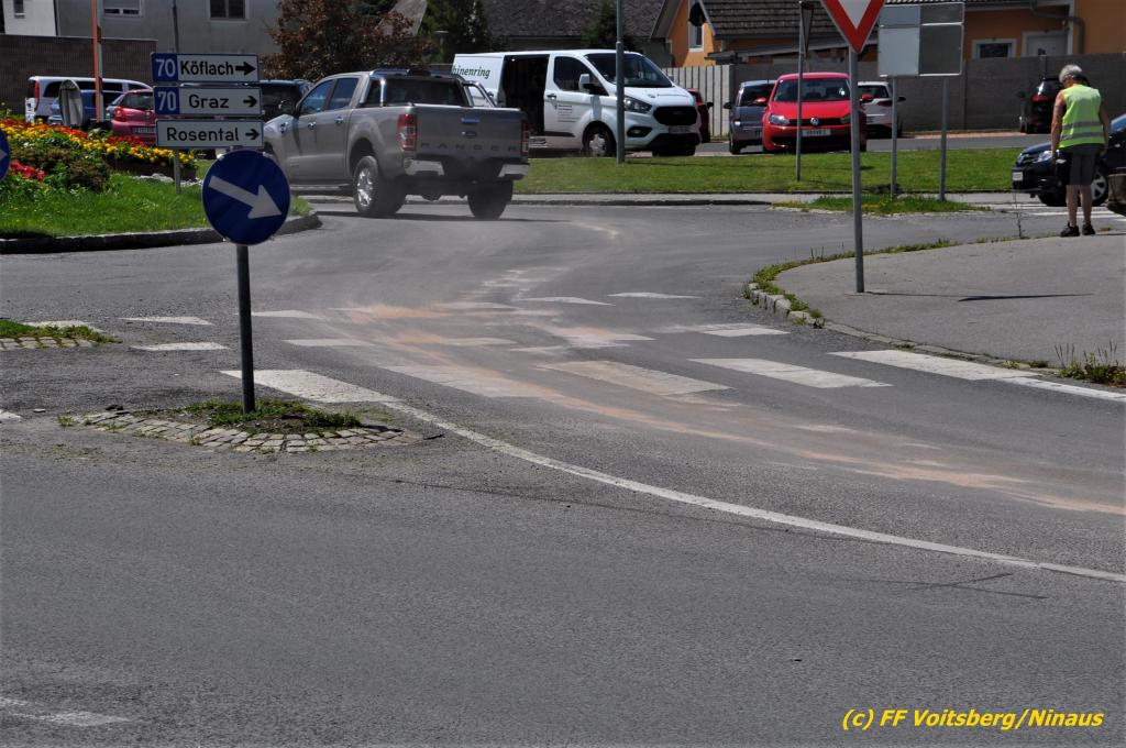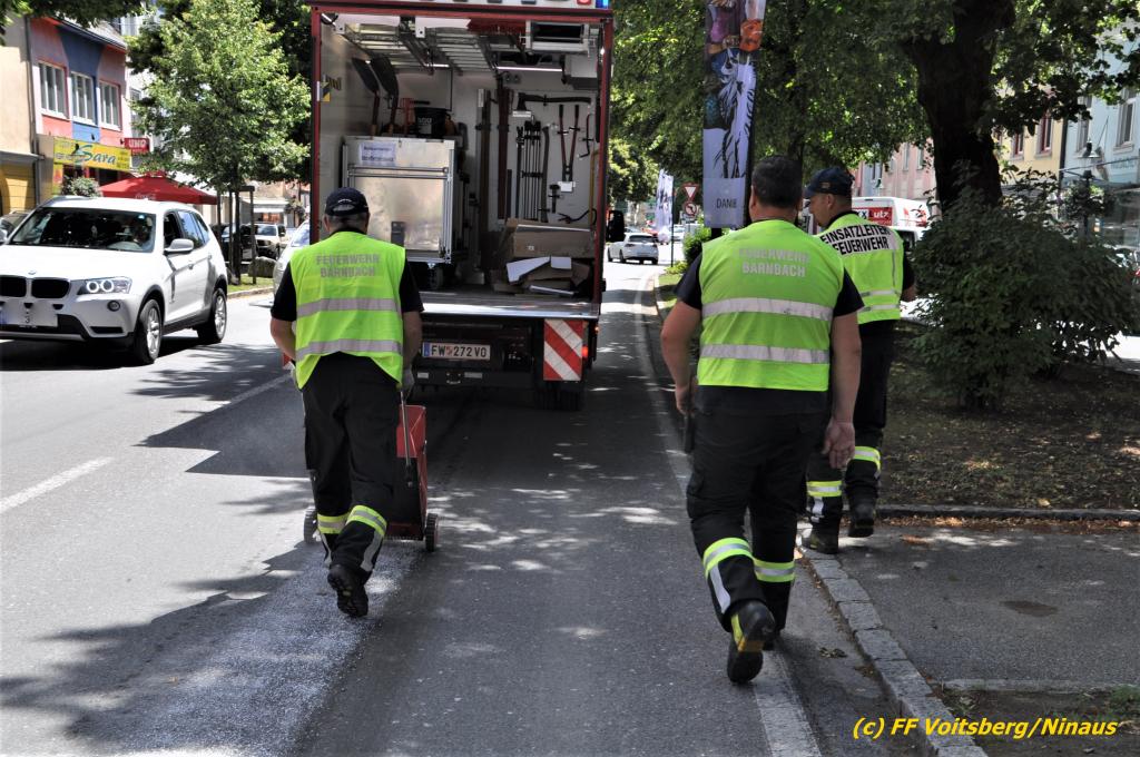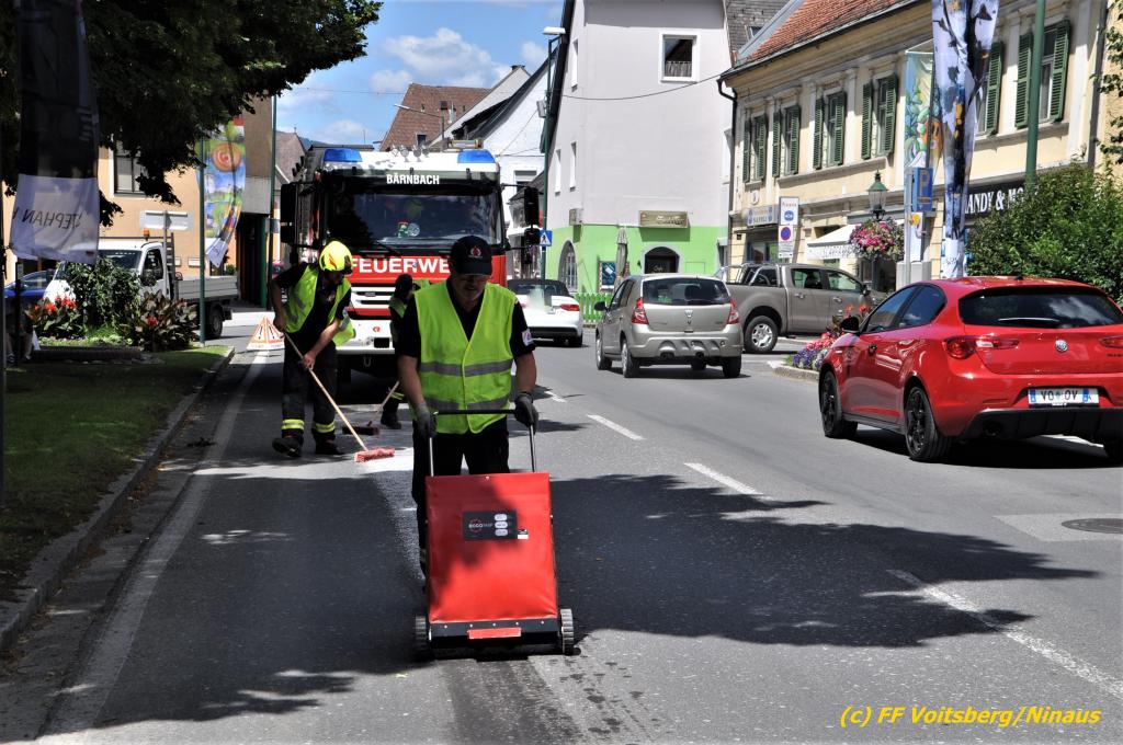 VOITSBERG, am 07.07.2020 Die Feuerwehren Bärnbach und Voitsberg wurden am Dienstag, 7. Juli 2020 in den späten Vormittagsstunden zu einem Schadstoffeinsatz alarmiert. Ein unbekannter Verursacher zog vom Kreisverkehr Lidl beginnend bis in die Schießplatzstrasse in Voitsberg eine ca. 2km lange, vermutliche Dieselspur.