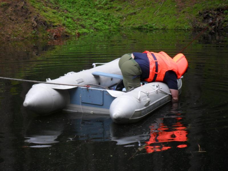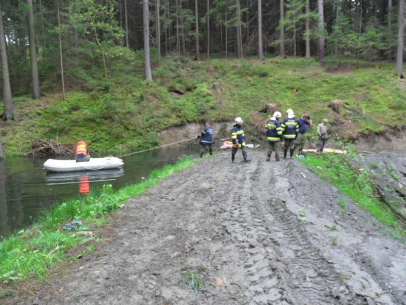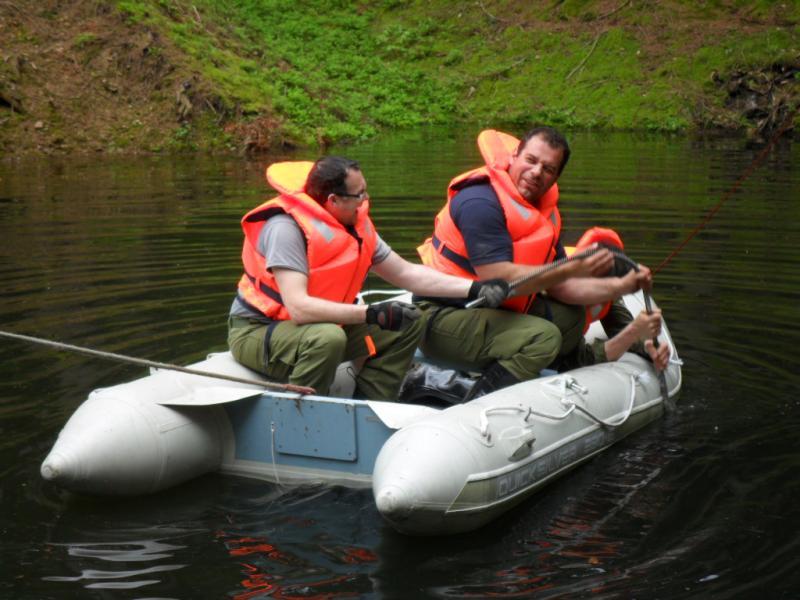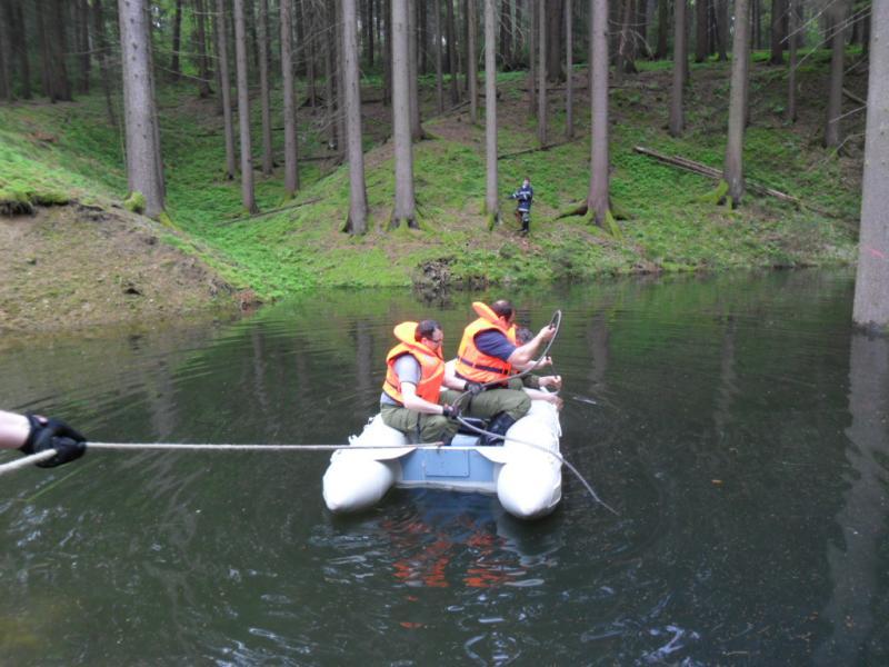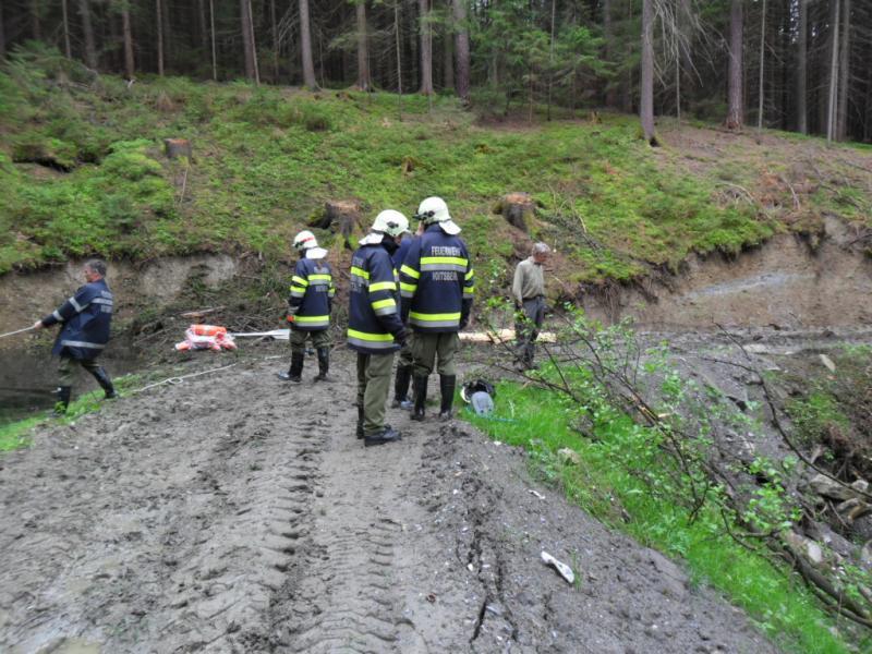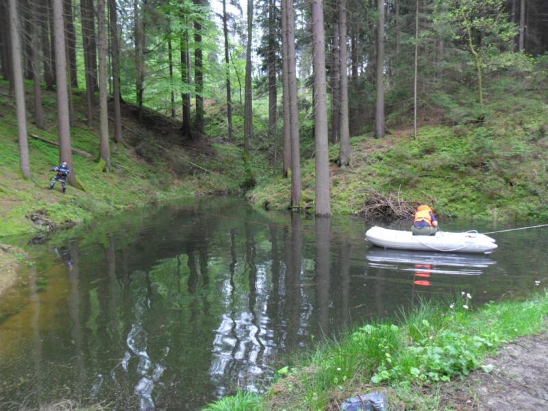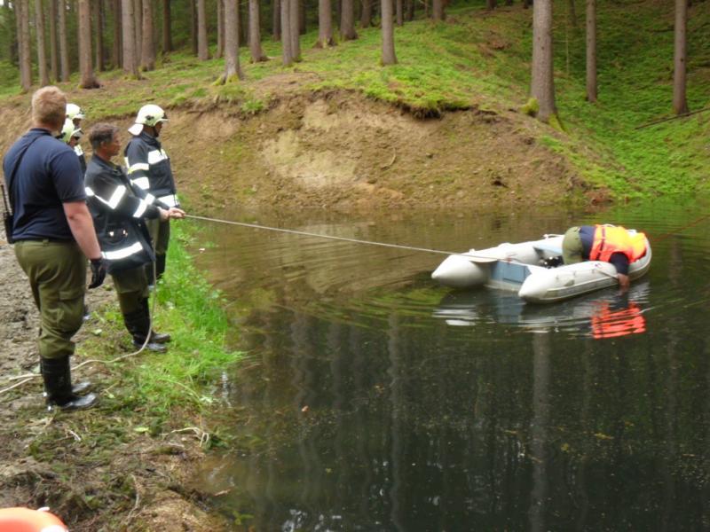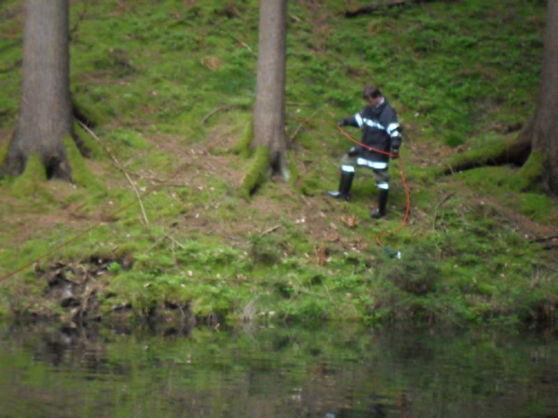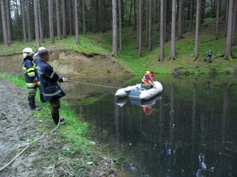 VOITSBERG, am 25.04.2014 Nachdem ein Überlauf-Abflussrohr verstopft war, drohte ein Teich über die Ufer zu treten und der Damm zu brechen. Unter Einsatz des Schlauchbootes der FF Voitsberg wurde unter Verwendung einer Spirale die Verstopfung behoben und das überschüssige Wasser konnte wieder abfließen.