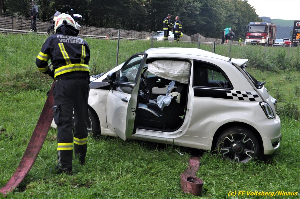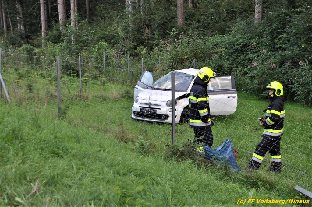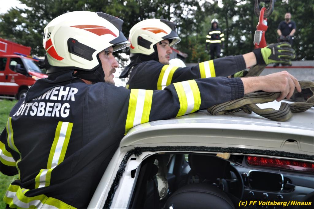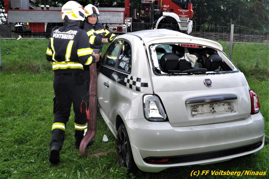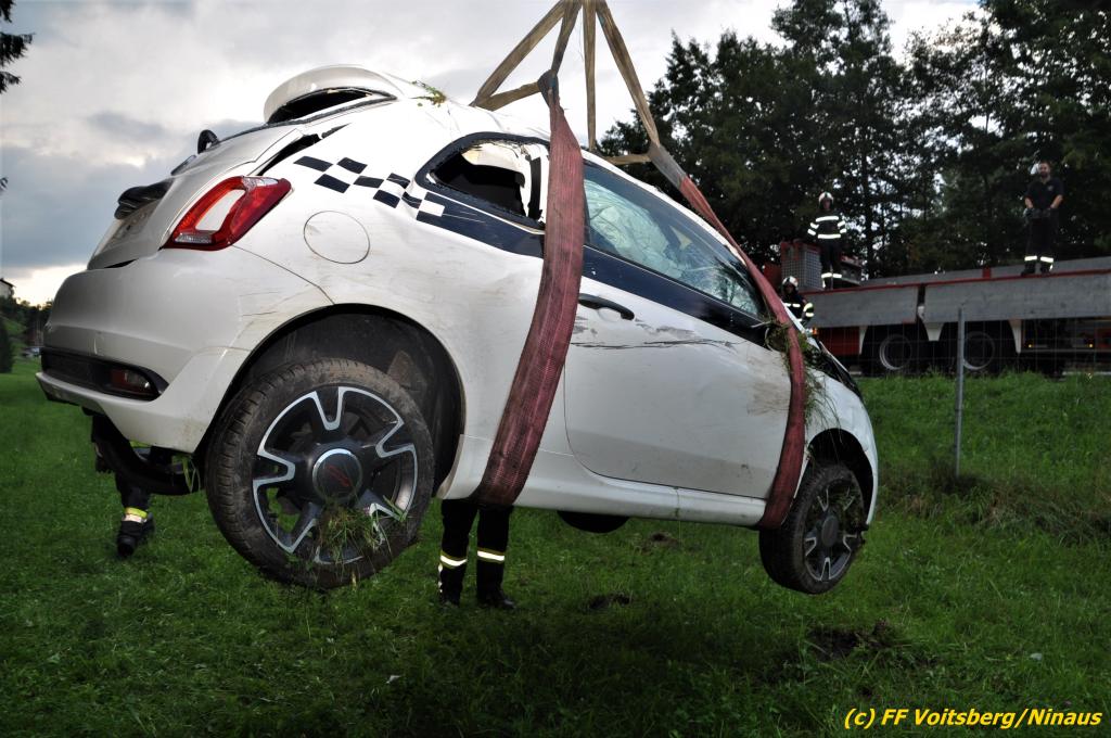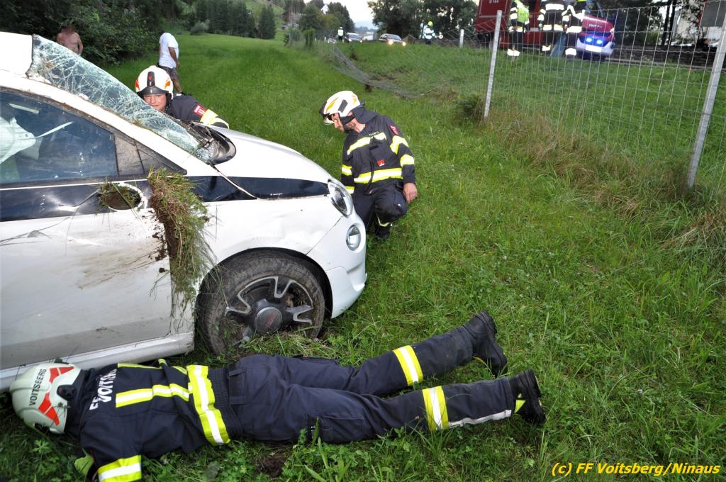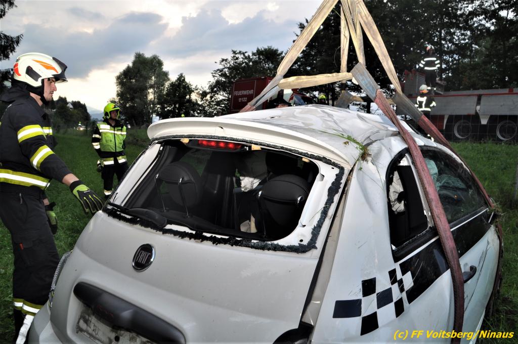 VOITSBERG, am 22.08.2020 Die FF Voitsberg wurde am 22. August 2020 um 17:33 Uhr zu einer Fahrzeugbergung als Unterstützung der einsatzleitenden FF Krems auf die Umfahrungsstraße Voitsberg der B70 auf der Höhe der Turmöl-Tankstelle alarmiert. Ein Pkw kam aus unbekannten Gründen rechts von der B 70 ab, überschlug sich mehrmals und kam auf einer Wiese zu stehen, wobei niemand verletzt wurde.