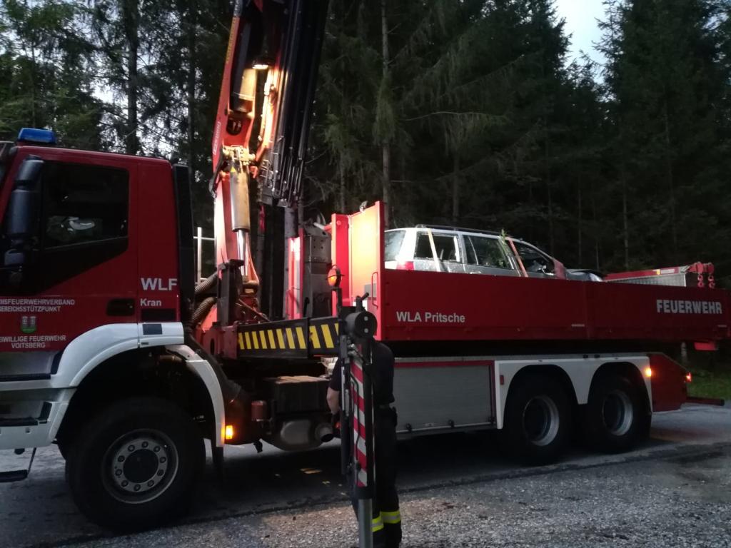 Fahrzeugbergung nach Anforderung der einsatzleitenden Feuerwehr Edelschrott des WLF-Kran der FF Voitsberg